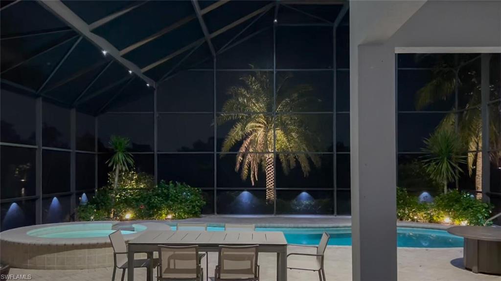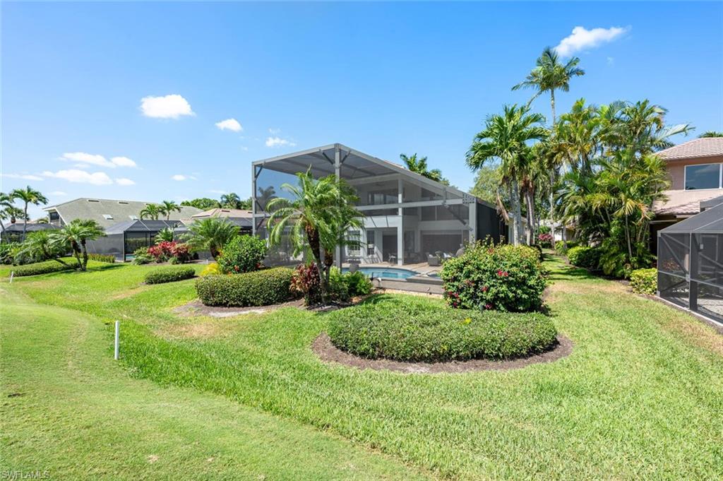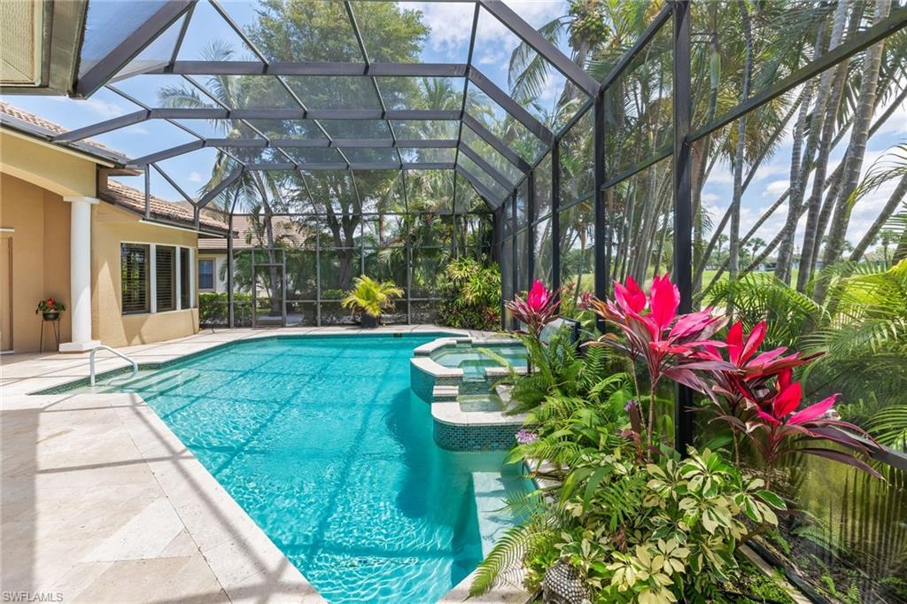 All the elements of a dream home come together in this light and airy Kensington retreat, where a timeless motif meets contemporary flair and a 2024 roof adds peace of mind. This 3-bed plus den, 3-bath residence boasts an open floor plan bathed in natural light and framed by tropical views, creating an inviting setting for both everyday living and entertaining. Multiple dining areas—indoors and out—make hosting effortless, while the layout flows seamlessly to the outdoors for true indoor–outdoor living. The spacious primary suite offers its own private entrance to the lanai, allowing you to slip outside for a morning swim or an evening under the stars. The ensuite bath provides a spa-like experience with elegant finishes and thoughtful design, making it the perfect place to unwind. A guest room and flexible den provide versatility for family, work, or hobbies, with the generously sized den offering potential for additional sleeping space. A rare guest cabana—complete with its own private entrance, living area, and full bath—offers ideal accommodations for visitors, extended family, or a private office. Outdoors, a large southern-exposure pool and sprawling screened lanai deliver the perfect blend of sun-soaked lounging and shaded comfort, all set against a lush tropical backdrop. This residence offers exceptional privacy and an unbeatable central Naples location—minutes from world-class shopping, dining, Artis–Naples, Sugden Theatre, and pristine Gulf beaches. Welcome to your private oasis in the heart of it all.