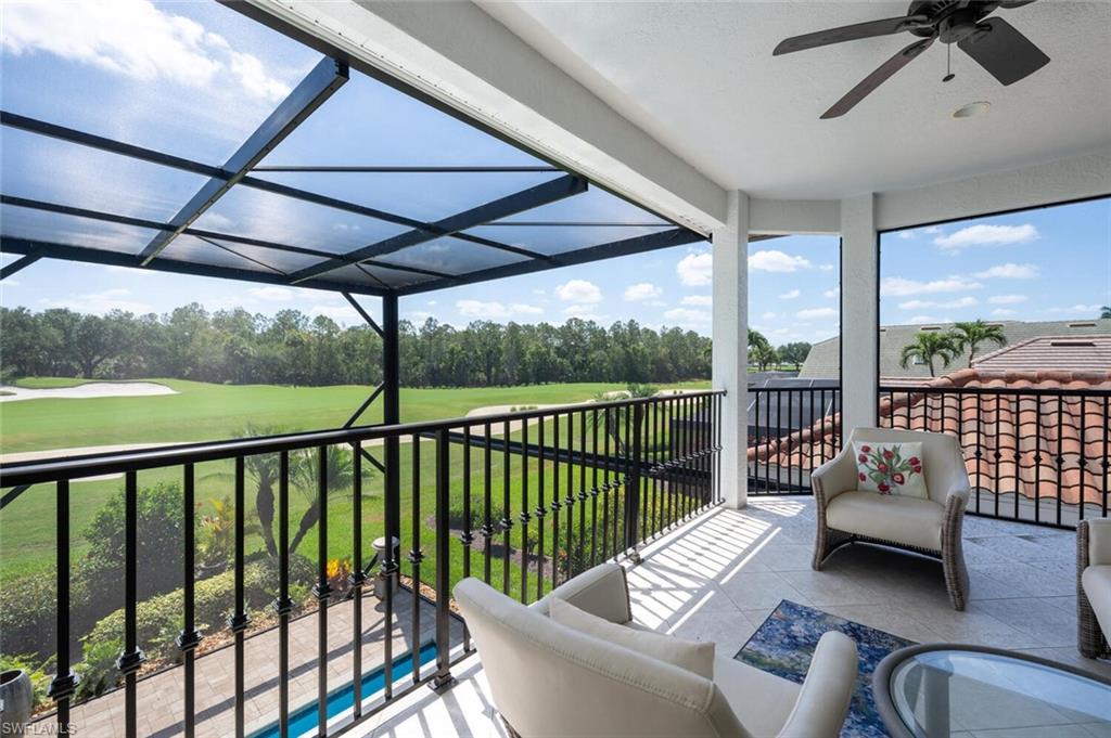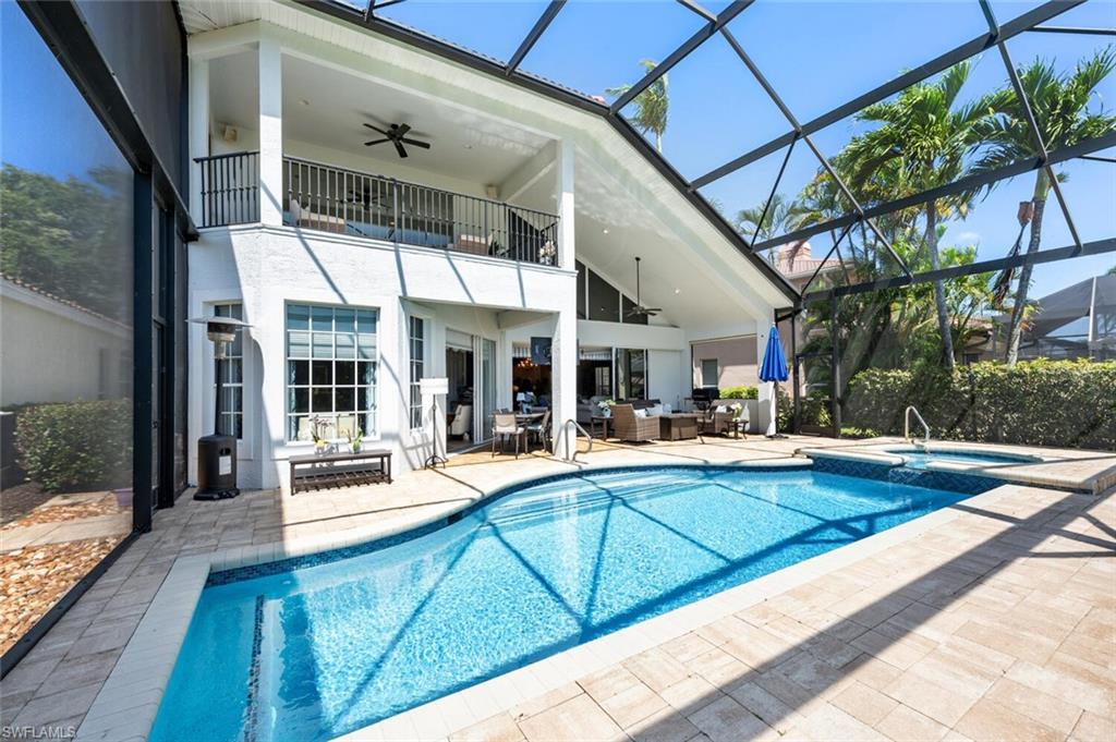 This masterpiece of elegance and comfort, perched on the 9th hole of Kensington, is move-in ready and designed to maximize its 3,482 sq ft of well-appointed living space. Brand-new updates further elevate this residence with the addition of a sparkling new pool and panoramic picture-frame cage, transforming the lanai into a resort-style retreat that perfectly frames sweeping views of the 9th fairway. Soaring 18-foot ceilings and expansive windows fill the home with natural light, illuminating the exquisite European Oak hardwood flooring throughout. Designed for both grand entertaining and effortless everyday living, this 4-bed + den, 4-bath Arthur Rutenberg residence features an expansive great room with a wet bar and cozy wood-burning fireplace, ideal for hosting guests. The formal dining room and eat-in gourmet kitchen provide multiple dining options, while the generous-sized loft offers additional space for relaxation or recreation. The renovated kitchen is a showstopper, boasting custom cabinetry, high-end appliances, and a spacious center island perfect for entertaining. The dedicated office/flex space impresses with custom built-in shelving and its own bath. The sprawling primary suite on the ground floor is a serene retreat, offering breathtaking golf course views, while the remodeled en-suite bath features a Jacuzzi tub, quartz double vanity, and a walk-in shower. Upstairs, the VIP bedroom with an en-suite bath and private balcony offers stunning golf course views—a perfect spot for sunbathing. Two additional spacious bedrooms and another full bathroom with towel warmers complete the second floor. A versatile den/5th bedroom on the ground floor is ideal for a home office, an au pair, or multigenerational living. Additional highlights include an oversized 3-car garage, hurricane shutters on all windows and doors, and recent upgrades, such as a new roof (2021), high- efficiency A/C, new water heater, and freshly painted interior and exterior. The optional Kensington Golf & Country Club offers an 18-hole championship golf course, a restaurant, a cutting-edge fitness center, tennis & pickleball courts, a new resort-style pool & more. This home offers an exceptional living experience in one of Naples’ most desirable communities, just minutes from vibrant entertainment, shopping, and dining at Mercato and Waterside, and pristine Gulf beaches!