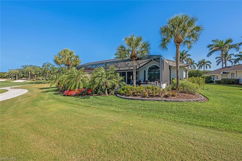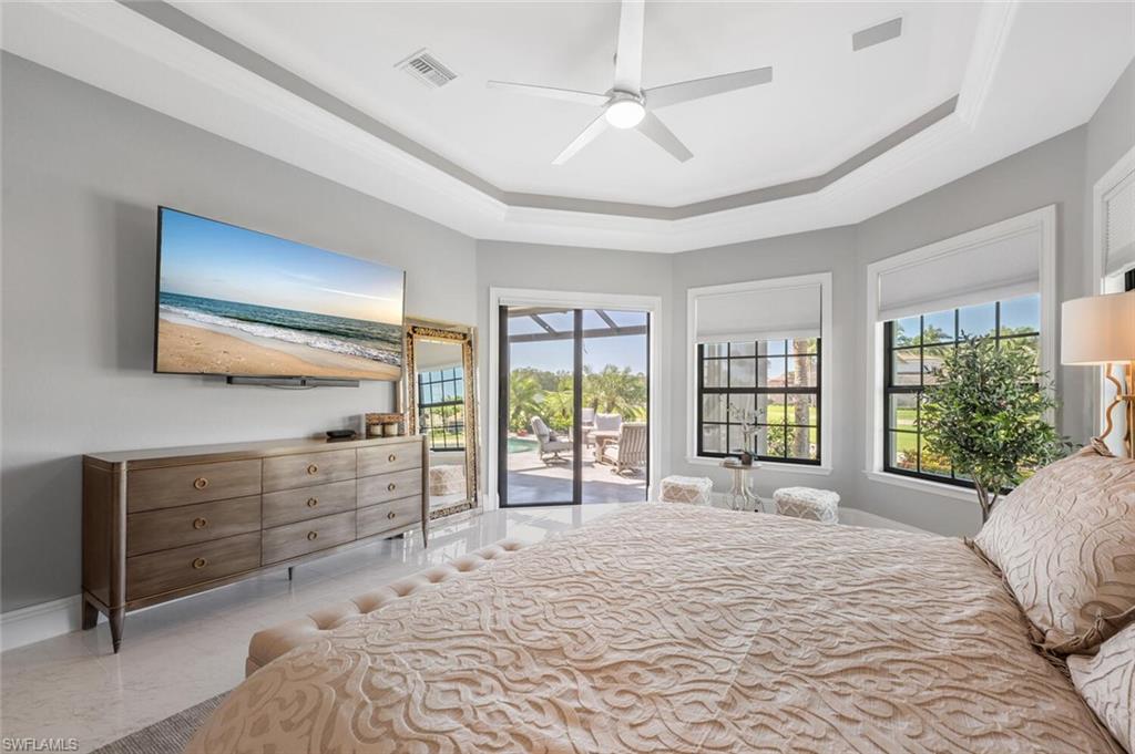 This move-in ready estate presents a rare opportunity to own a true masterpiece of interior artistry and resort-style living, offering an unrivaled blend of beauty, comfort, and flair. Perfectly poised on the golf course in the rarely available enclave of Knights Bridge at Kensington—where few homes have been available in the past few years—this residence has been thoughtfully curated to elevate everyday living into an art form. Inside, coffered ceilings, recessed lighting, and high-end designer touches set an impressive tone. Formal and informal living spaces blend seamlessly, featuring a family room with a decorative electric fireplace, a formal living and dining room, and a morning room ideal for casual gatherings. The timeless kitchen stands as a stunning centerpiece, adorned with premium finishes and high-end appliances ready to inspire culinary creations. The spacious primary suite offers a serene seating area, dual closets, and an elegant spa-like bath designed for pure indulgence. While the interiors captivate, it’s the outdoor living that truly defines the resort lifestyle. Step into the expanded Picture Window screened lanai and discover your own private retreat: a shimmering pool and spa, surrounded by lush tropical landscaping and triple pygmy palms. A brand-new outdoor kitchen, covered lounging areas, and inviting spaces for dining al fresco under the stars create an effortless extension of the indoors. With sweeping, unobstructed golf course views as your backdrop, every sunrise and sunset feels like a front-row event designed just for you. This extraordinary property also showcases an impressive list of recent upgrades, including a replaced garage door opener (2023), insulated garage attic (2023), installed office doors (2023), brand-new whole-house A/C systems and ductwork with a mini-split added for garage cooling (2023), Dishwasher replacement (2023) a new primary suite water heater and outdoor spigots (2024), upgraded pool equipment including; New Pool Heater to be installed , a new motor, filter, automatic pool filler, temperature sensors, tank body actuator, and pump relay (2024), a new irrigation controller (2024), vibrant tropical landscaping added in 2025, and a completely renovated outdoor kitchen with new cabinets, countertops, a Lynx grill, vent hood, sink, refrigerator, and TV (2025). Additional features include a whole-house generator, ensuring peace of mind year-round. This is more than a home—it’s a private resort, a tropical haven, and a masterclass in refined living, set within one of Kensington’s most sought-after enclaves.