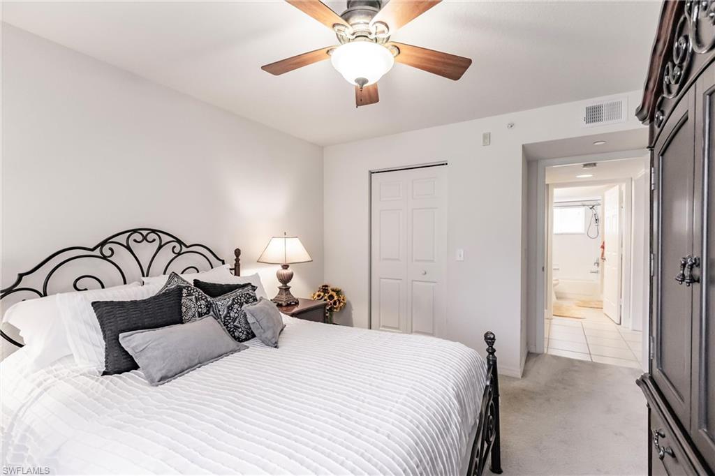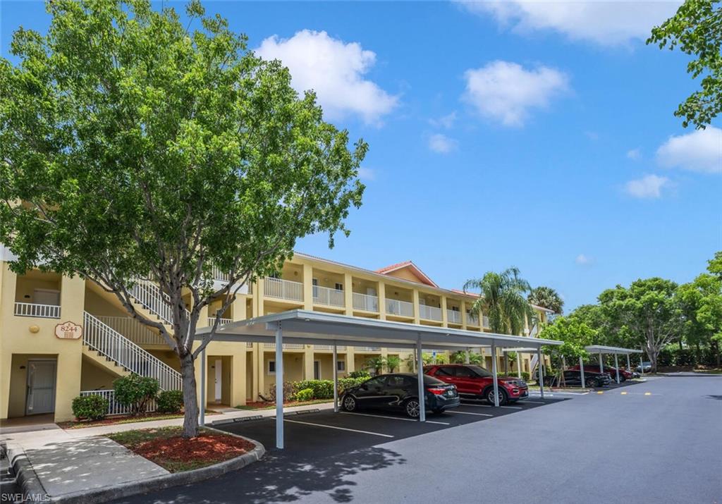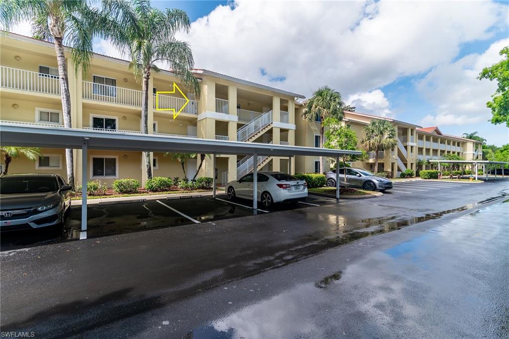 SELLER WILL COVER ALL HOA/CONDO FEES FOR THE BUYER THROUGH DECEMBER 2025 – NO ASSOCIATION FEES UNTIL NEXT YEAR! Welcome to the incredible opportunity to call Key Royal Condominiums home in beautiful North Naples, Florida! This top-floor gem offers breathtaking lake views from every room, making every moment feel like a vacation. Inside, you'll love the stylish wood-like tile floors in the living areas and cozy carpets in the bedrooms. The spacious master bedroom features a large walk-in closet, and the soaring high ceilings let natural light pour in throughout. Plus, enjoy the added convenience of having your own washer and dryer right in the unit! One of the highlights of this home is its private carport space—right next to the building entrance, making parking a breeze. Living in this gated community feels like a permanent getaway with fantastic amenities to enjoy. From a clubhouse, large heated pool, and relaxing spa with a charming Tiki hut to an exercise room, billiards, library, poker/games area, and a business center—there’s something for everyone! And your furry friends are welcome to join in the fun too! With a well-maintained community and an onsite property manager available five days a week, you'll feel completely at home here. The location is unbeatable—just a 15-minute drive to stunning beaches and 25 minutes to the International Airport. Plus, you’re within walking distance to great restaurants, shops, bars, and a new hospital. With an A-rated Naples school district nearby, including Gulf Coast High School just a short walk away, it's the perfect spot for everyone! Whether you’re looking for a full-time home, a seasonal retreat, or an investment opportunity, this condo offers the best of coastal living. Don’t miss your chance to experience the incredible lifestyle at Key Royal Condominiums!