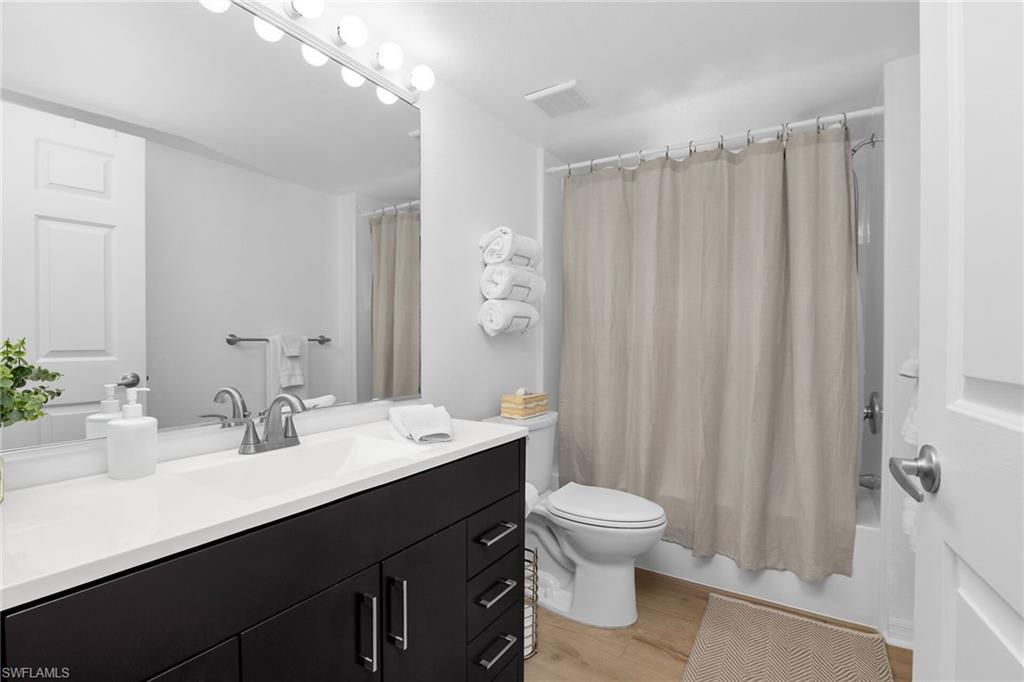This 3rd floor walk-up unit has all new flooring, bathroom, paint and kitchen. Comes with all new furniture. Centrally located off Immokalee Road. Close to shops, restaurants, Wiggens State Park Beach is right off Immokalee Road. I-75 and NCH Hospital is a short drive on Immokalee Road. This unit is vacant and easy to show. The Clubhouse is a short walk from this unit. 24 hour fitness. Tiki hut by the poolside for gatherings and meeting neighbors.