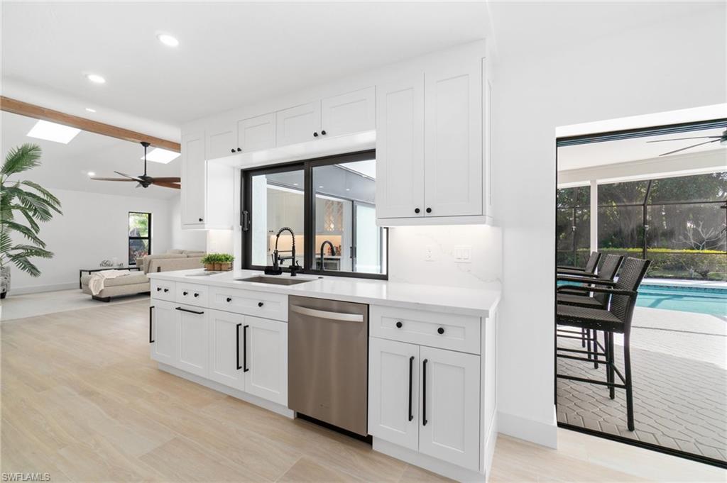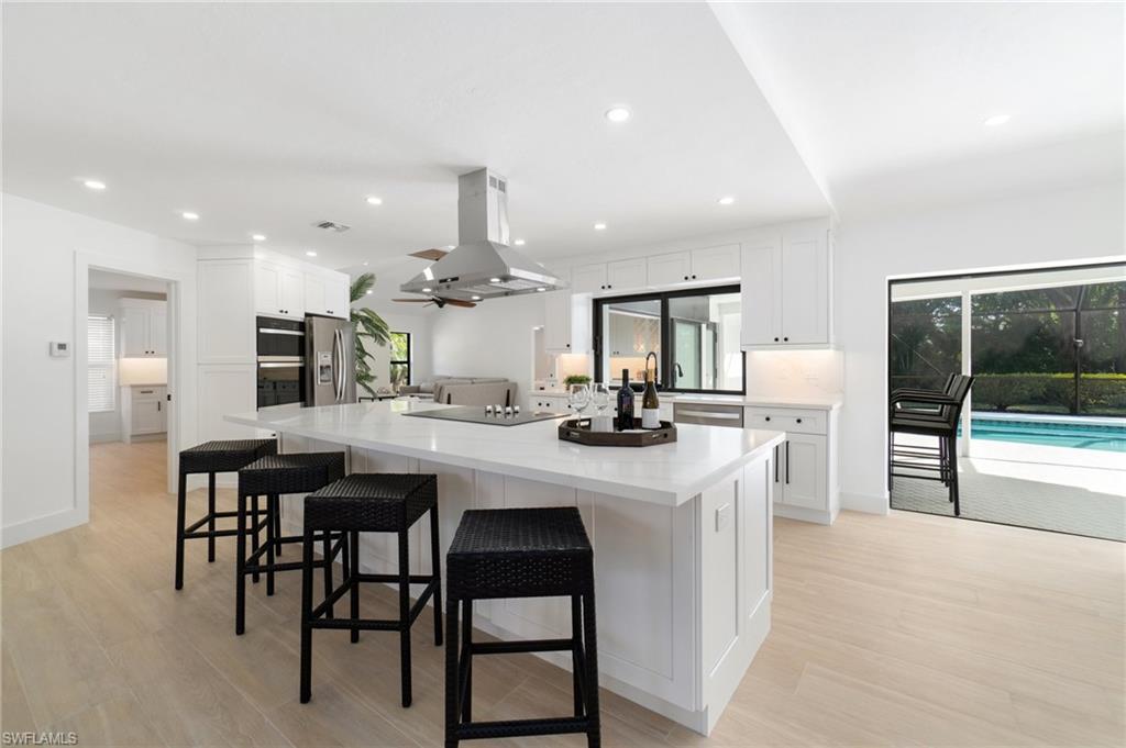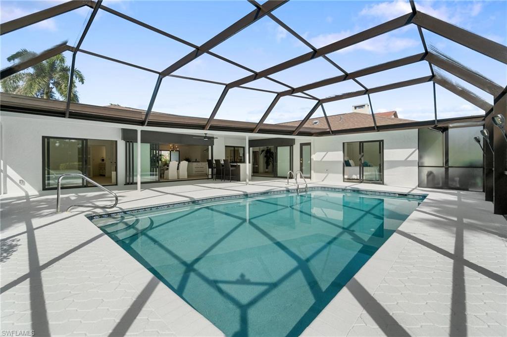 Exquisite luxury living awaits you. Nestled in Kings Lake, one of the most coveted neighborhoods in Naples, this stunning estate offers an unparalleled blend of elegance, comfort, and modern sophistication. Situated on an oversized lot, this home is fully remodeled with the utmost attention to detail and is truly ready to be enjoyed. Step into the grand entryway where the home is bathed in an abundance of natural light, thanks to expansive hurricane rated windows and sliding doors that offer breathtaking views of your private pool and surrounding landscape. The chef-inspired gourmet kitchen features slow-close, white shaker-style cabinetry and quartz countertops with matching quartz backsplash and brand-new stainless-steel appliances. The lavish spa-inspired bathrooms have floor to ceiling tile and new plumbing. With over 2,200 square feet of living space, the home boasts 2 spacious king-sized bedrooms and one queen-size overlooking the pool. The open concept living and dining areas are perfect for entertaining, featuring spaces that seamlessly connect the indoors to the beautiful outdoor oasis. Enjoy your own private resort with a sparkling underground pool, expansive patio, and spacious yard, ideal for relaxing or hosting intimate gatherings. Located just 3.7 miles from 5th Ave, a reputable world-class dining, shopping, and cultural attraction. Discover a life of elegance and luxury—schedule your private showing today!