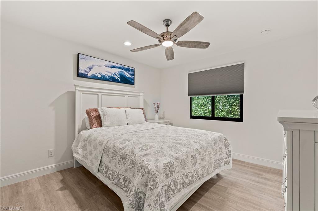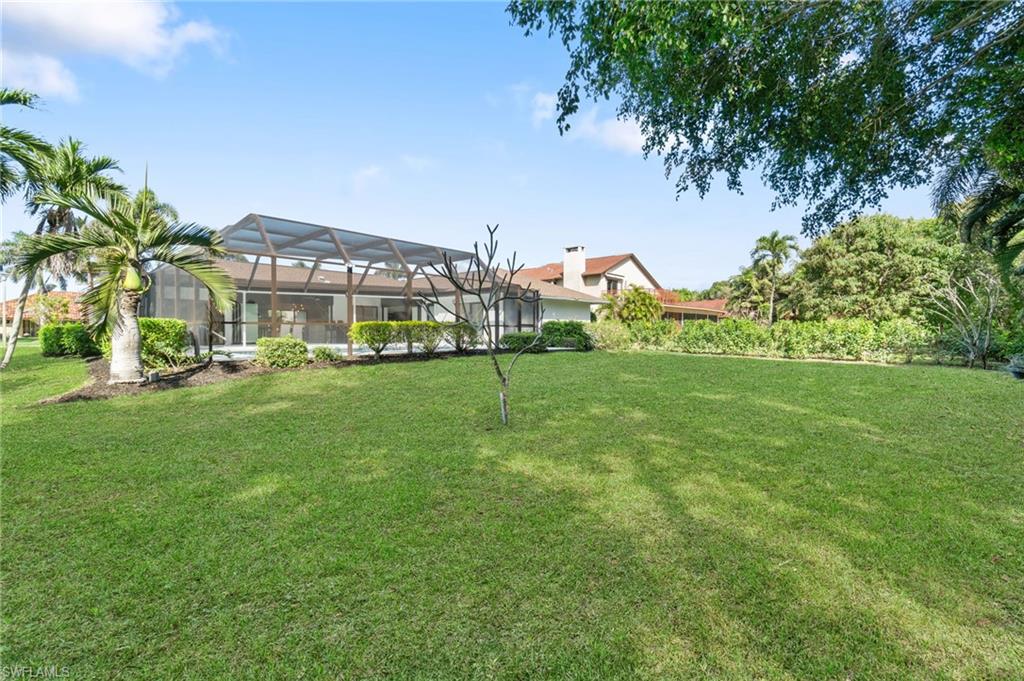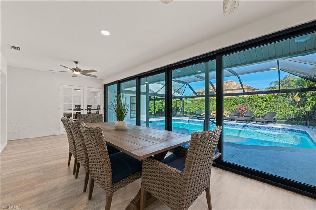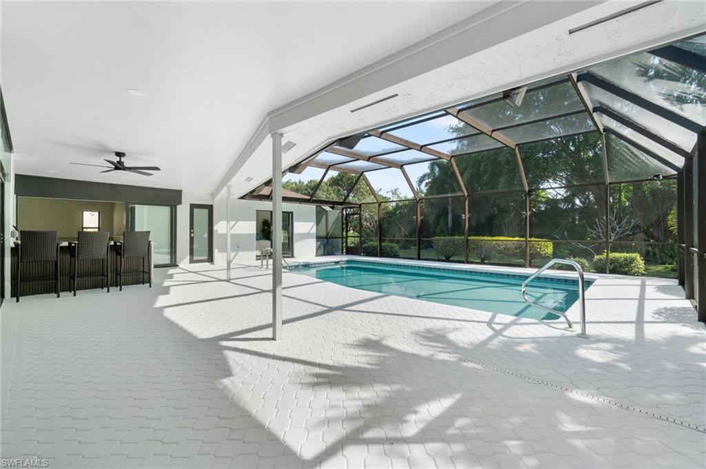 Over $300,000 has been invested in this home over the past four years, bringing it to the level today’s buyers expect and appreciate. Since 2021, nearly every major system has been improved: new roof (2025), new AC system (2021), a complete kitchen remodel with new custom cabinetry, stainless appliances and quartz counters, plus the addition of a dry bar with a wine fridge (2024), modern can lighting throughout the main living spaces (2024), and bamboo flooring throughout with the exception of the two guest bedrooms (2024). Outdoors, the expansive and open back yard now sports a 12-foot by 24-foot pool (2023) featuring a sun shelf, bench seating, LED lighting, and bubblers as well as a Pentair variable speed pump. The sandblast marble pool deck/patio and surrounding back yard are enclosed by a new five-foot-high aluminum fence with dual-swinging, self-lock gates (2022), perfect for the children and dogs to play and run around in protected freedom. Expansive yards like this are few and far between in Kings Lake. LeafFilter gutters (2023), hurricane-rated double front doors and a smart garage door (2024), new generator hookup (2023), and all impact-resistant windows, including an electric storm shutter on the lanai, give you peace of mind. The freshly painted interior treats you to soaring ceilings, plantation shutters, custom cabinetry in the laundry, and custom organizers in the master walk-in closet. Kings Lake is known for its proximity to downtown Naples, its low HOA fees, and its homes that each have their own look and style with plenty of land between neighbors. Its wide, winding streets with mature landscapes are ideal for walking and bicycling, plus the County greenway runs alongside the eastern border of the community. Quick access to the Publix shopping center with Starbucks, Italian and Mexican restaurants, cleaners, banks and more is available from within the community; there’s no need to go out to the main road. This fully upgraded home in one of Naples’ most established and accessible neighborhoods, checks every box.