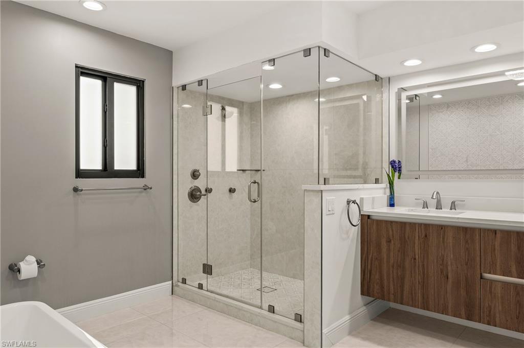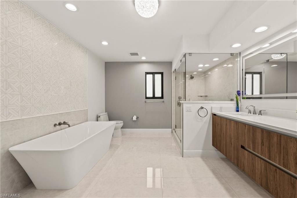 Discover effortless Florida living in this beautifully updated 3-bedroom, 2.5-bath pool home situated on an oversized 1/3-acre lot in the picturesque community of Kings Lake. Offering both privacy and exceptional proximity to downtown Naples, this home features recent renovations that align perfectly with today’s design trends—inside and out. You’ll love the newly remodeled kitchen, complete with stainless steel appliances, quartz countertops, two pantries, and a bright, open layout overlooking both the living room and the screened lanai. The spacious primary suite is a serene retreat with a stunning, newly updated bathroom featuring a free-standing soaking tub, custom tile work, and a glass-enclosed shower. A convenient pool bath adds function and ease for indoor–outdoor living. With more than 2,300 square feet of living space, this home offers plenty of room to relax or entertain. Large sliding glass doors open to the expansive screened lanai—with an impressive 26' x 16' covered area—perfect for al fresco dining, lounging, or enjoying sunsets by your private pool. Florida’s warm climate makes year-round swimming and outdoor living a natural part of daily life. Additional highlights include a newer roof (2013), newer HVAC system (2015), and an oversized 22' x 24' garage. The Kings Lake HOA fee is just over $400 annually, and the community is pet-friendly with fences allowed upon approval. Kings Lake is known for its lush landscapes, tranquil lakes, and scenic walking and biking paths surrounded by native Florida foliage. Residents enjoy nearby pickleball and tennis, as well as the convenience of the Publix Neighborhood Center right within the community. All of this is located just three miles from Olde Naples, where world-class dining, charming shops, and beautiful Gulf beaches await.