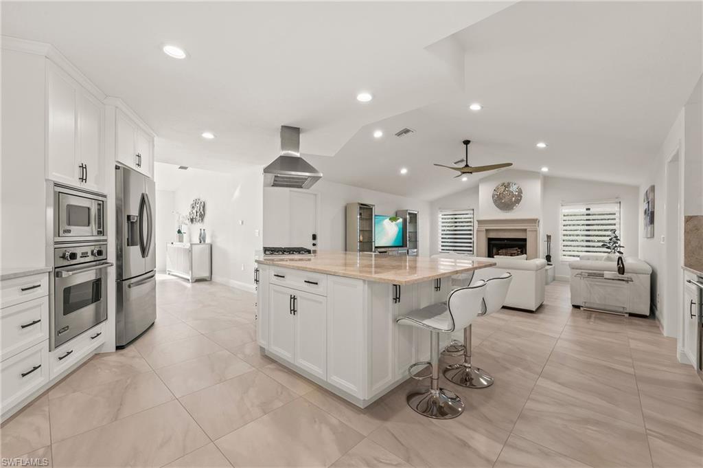 Exquisite Luxury Living in the Highly Sought-After Kings Lake Community! 3 CAR GARAGE, GAS COOKTOP, WOOD BURNING FIREPLACE!! ENTERTAINERS DREAM HOME, a stunningly remodeled oasis that epitomizes luxury and elegance. Nestled in the prestigious Kings Lake community, this remarkable residence has been transformed from top to bottom, offering an unparalleled living experience for those who appreciate the finer things of life. This home has been fully remodeled and updated in almost every way possible and is being sold furnished turnkey. New roof (2023), Carrier A/C system and duct work (2023), hurricane impact windows and doors, new paint inside and out, all new electric, new light fixtures, new kitchen, bathrooms, laundry room, tile floor etc. This home has it all, including GAS STOVE, WOOD BURNING FIREPLACE, FULLY FENCED BACK YARD... As you step inside, you are greeted by an inviting foyer that flows seamlessly into a living room and a formal dining room, perfect for hosting lavish dinner parties or intimate family gatherings. The heart of this home is the open kitchen, featuring a large island that serves as both a culinary workspace and a gathering spot for friends and family. This dream kitchen features new wood cabinetry, a gas cooktop, stainless steel appliances, wine cooler, custom quartz countertops, dry bar/coffee station. The spacious family room is designed for relaxation and entertainment, complete with a cozy fireplace. Both bathrooms have been fully updated with top-of-the-line custom cabinets, stylish tile work and floating mirrors. The expansive master bedroom is a true sanctuary, featuring a lavish ensuite bath designed for relaxation and rejuvenation. Indulge in the opulence of the spa-like atmosphere, complete with high-end fixtures and finishes that elevate your daily routine to an extraordinary experience. Large walk-in closet, adorned with custom built-ins, offers not only ample storage but also an organized haven for your wardrobe. Enclosed lanai (Florida room) is currently set up as a dining area but can be used as a den/office. Step outside to discover your private paradise—heated saltwater pool, covered and uncovered outdoor area and a very private backyard. Pool has been resurfaced in 2023, new pool equipment in 2023 as well. This stunning home also features a rare 3 CAR GARAGE (with brand new epoxy floors), providing not only convenience but also plenty of storage options for all your recreational gear or vehicles. This home would be an ideal investment property, it can be rented monthly (12 times a year). Kings Lake community offers VERY LOW HOA FEES (only $434 a year), walking and biking trails, a tennis/pickleball courts all within minutes of famous 5th Ave, Naples Pier and white sand beaches. Don’t miss out on this extraordinary opportunity! Schedule your private tour today and step into a life of luxury where every moment feels like a vacation. Your dream home awaits!