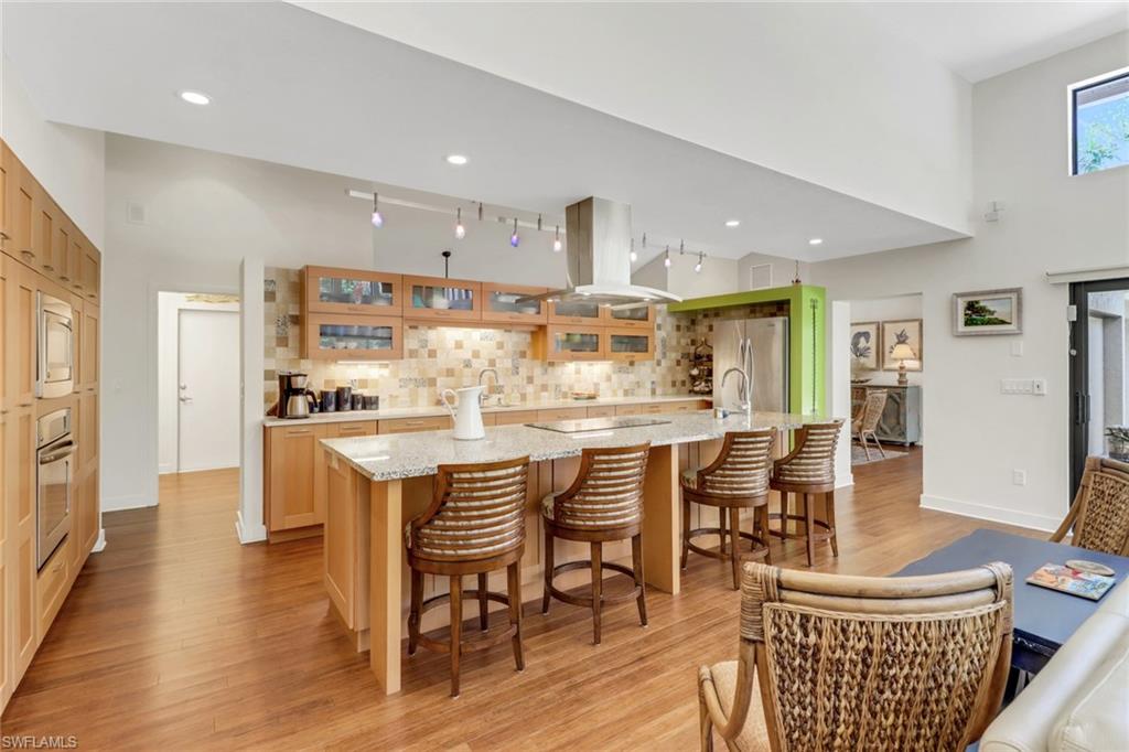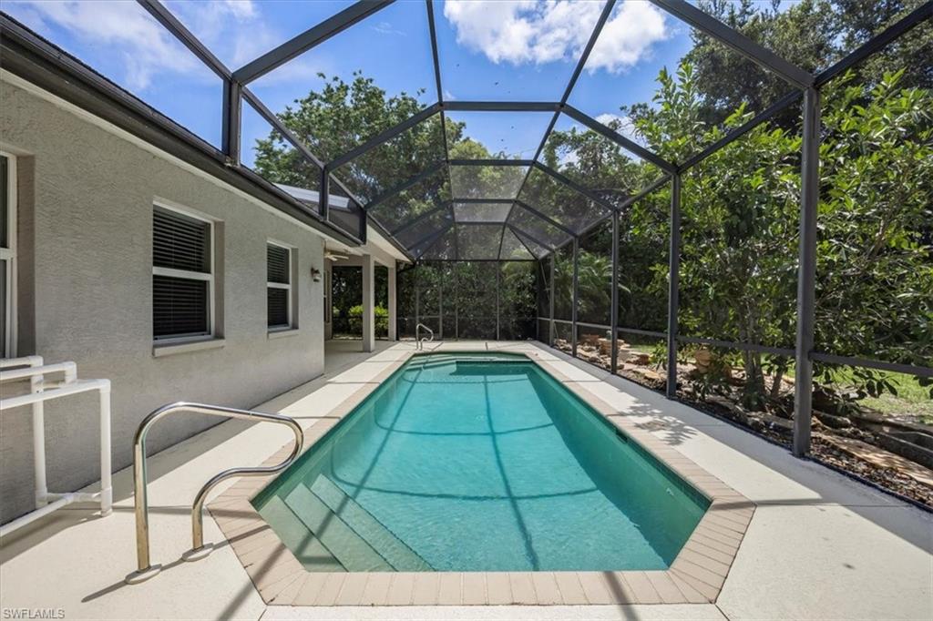 Designed for Florida Living by Local Architect David Poorman, this outstanding Home is Timeless! With an Outstanding Open Floor Plan, Generously Sized Rooms, Abundance of Windows, Clerestory Windows, Sliding Glass Doors, French Doors and Skylights allows Natural Light to fill the Home. Teragan Bamboo Flooring, 5-inch Baseboards, Solid Core Interior Doors. ALL EXTERIOR, DOORS SLIDING GLASS DOORS, GARAGE DOOR, FRONT DOOR, SIDE DOOR TO THE GARAGE & ALL WINDOWS INCLUDING THE CELRESTORY WINDOWS ARE HURRICANE IMPACT, Saltwater Pool with Resistance Swimming Spa Jets, Travertine Decking and Solar Heating. These are just a few of quality upgrades throughout the home. The floor plan flows around the amazing great room with its soaring twelve and half foot flat ceilings, lined on two sides by stack back walls of sliding glass doors and clerestory windows, opening up to a wraparound screened lanai overlooking the saltwater pool, lush private backyard and preserve area. Oversized kitchen opens to great room features custom wood cabinets with built-ins, 13-foot island with bar sink, quartz countertops, custom tile backsplash wonderful lighting, stainless steel appliances. Generous Sized Primary Bedroom Suite is very serene with soaring ceilings, French doors that open on to lanai. Spa Inspired Primary Bath Suite is filled with natural light from French Doors & Sky Lights, wood look tile flooring, custom lighting, mirrors, wood cabinets with travertine vanities, bidet, soaking tub with jets, walk in shower frameless enclosure, outside shower with privacy wall. Split Floor Plan allows for privacy of all residents the home has two other bedrooms along with good-sized guest bath. Home also has a wonderful home office which has two work areas with custom cabinetry. Not to be forgotten an oversized two car garage, with storage space. NEW TIMBERLINE SHINGLE ROOF HAS JUST BEEN COMPLETED!!! NEW SOLAR POOL HEATING PANELS HAVE BEEN INSTALLED!!! Located in Kings Lake in the sought-after Woodland's neighborhood of 45 custom homes; they enjoy their own private heated pool/clubhouse! Kings Lake is low density community with and abundance of green space, walking and jogging path, nature trail, tennis & pickle ball court. Low Fees, Pet Friendly. Minutes to Olde Naples & Marco Island for the Beaches Fine Dining, Shopping & Theatre! You will find a wonderful Florida Lifestyle with this home!
