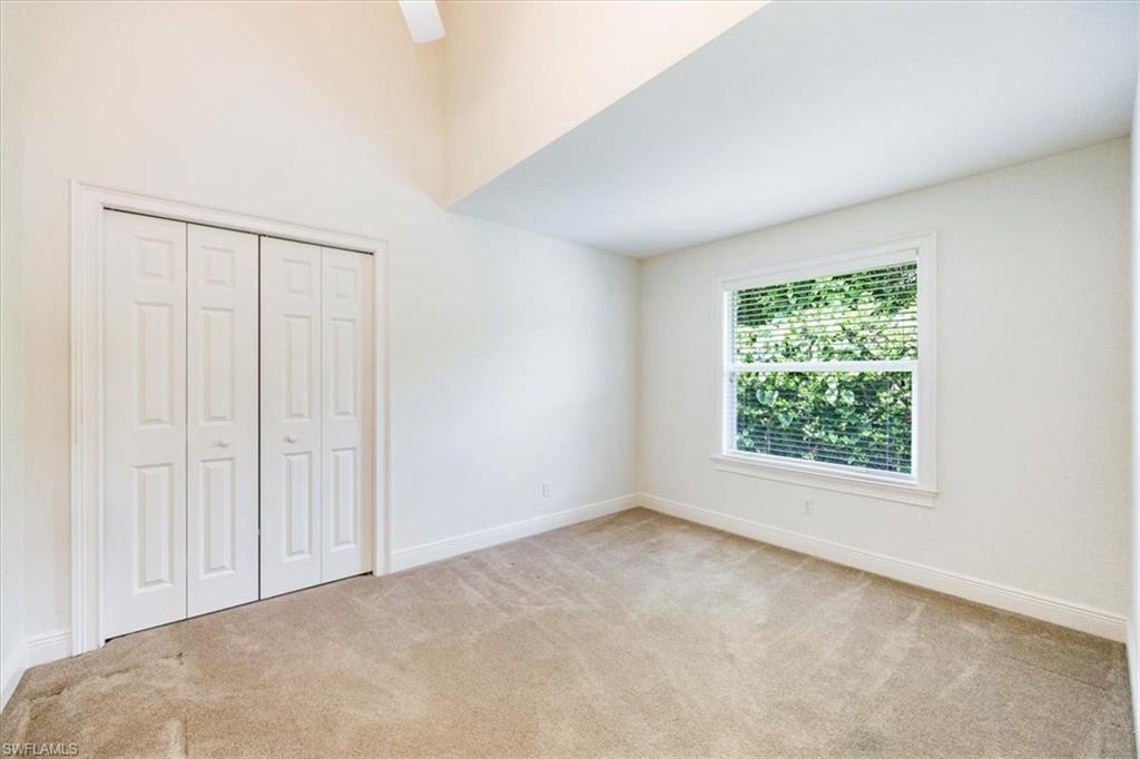 Tucked away on a quiet cul-de-sac in the desirable Kings Lake community, this well-maintained home offers 3 bedrooms plus a den, 2 bathrooms, and a peaceful, serene backyard with a screened lanai and pool. The pool features custom seating—perfect for lounging and enjoying the Southwest Florida sunshine in comfort. The backyard is spacious and private, ideal for quiet mornings or casual gatherings. Inside, the large and open kitchen includes crisp white cabinets, accent lighting, and plenty of storage, making it both functional and welcoming. Additional features include crown molding, chair railing, vaulted ceilings, custom doors, and built-in shelving throughout. The layout offers generously sized rooms and extra storage with custom closet systems. Large windows in the guest bedroom and den bring in great natural light. A new roof ( 2024 ), new water heater ( 2024 )and double-pane impact windows add durability and efficiency. An oversized 2-car garage with pull-down attic stairs provides even more storage space. Kings Lake is a peaceful community, featuring mature landscaping and a serene atmosphere. This community provides excellent amenities, including bike and jogging paths, a community pool, fitness center, and tennis courts. Enjoy the prime location, close to Downtown Naples and pristine white sand beaches.