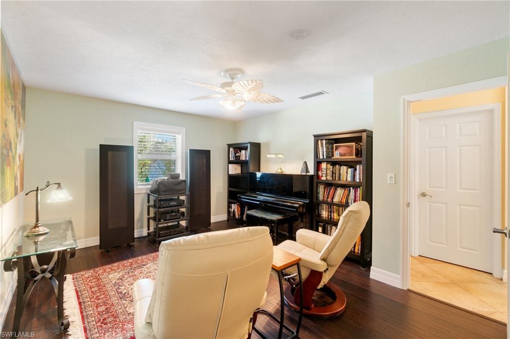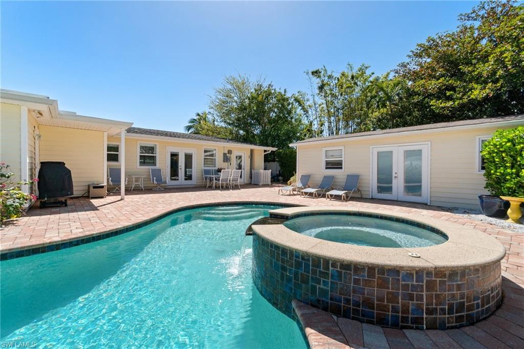 This inviting Naples residence, attractively priced to sell, offers ample space and is just minutes from downtown and SWFL's beautiful beaches. It features three spacious bedrooms, two and a half baths, and a den attached to the primary wing. The well-appointed kitchen and cozy living area are perfect for gatherings or quiet evenings. The home boasts a great laundry/mud room with an extra refrigerator and several convenient access points leading to the pool area. Outside, enjoy your personal oasis with a below-ground pool and spa, expansive paver decking, and a wrap-around fence for privacy. A garage and gated side space offer ample parking, including room for a boat. A bonus structure, currently used as a gym, adds versatility and plenty of extra space for your family's hobbies! Enhanced by mature Calusias, the home provides a private and tranquil setting. With no HOA and an ideal location, this property is also a fantastic opportunity for rental investment. Whether seeking relaxation or entertainment, this property is the perfect choice. Rest assured, this property is high and dry from Hurricane surge -- designated X500 Flood Zone and does NOT require flood insurance.
