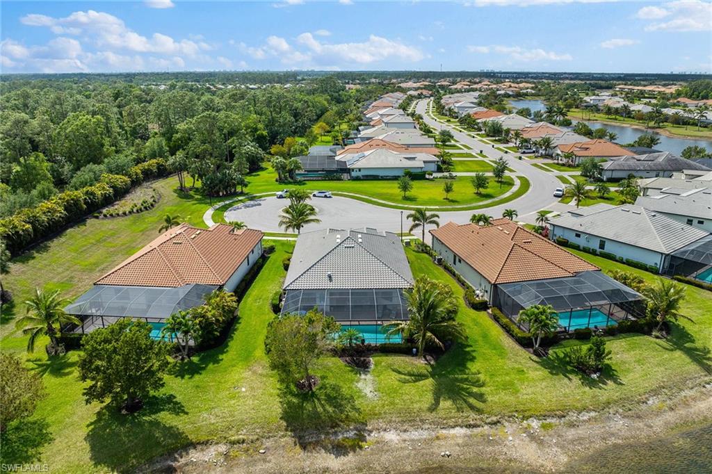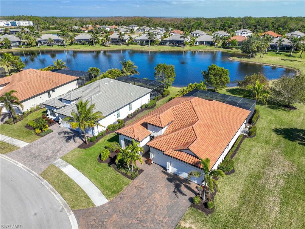 A once-in-a-lifetime opportunity to own a piece of paradise in one of the sought-after coastal communities in the world. Quietly tucked along one of the most beautiful and desirable streets in North Naples' LaMorada gated community, arrives a meticulously cared for single-story custom estate home featuring jaw-dropping panoramic lake views, nearly one-half-acre of lushly landscaped grounds and coveted rear southwest exposure for picturesque sunsets all year long. Available for only the second time ever, this beautiful home boasts four spacious bedrooms, three full baths, an outdoor entertainment oasis featuring a custom heated saltwater pool and spa, and one of the largest lots in any gated community in the city of Naples. Other features of this newer construction masterpiece include a chef’s kitchen with natural gas cooking, guest en suites for absolute privacy, hurricane impact windows and doors throughout, storm smart shutters, a new generator, large volume ceilings, an oversized brick paver entry driveway with three-car garage and offered fully furnished/turnkey for total simplicity and immediate enjoyment. Within walking or biking distance to Founder’s Square, numerous golf courses and endless fine dining, shopping and entertainment opportunities, LaMorada offers an unmatched experience of community living with endless socializing opportunities and low HOA fees. Residents of LaMorada also enjoy access to an expansive and engaging clubhouse, tennis courts, pickleball courts, a state-of-the-art fitness center, private theatre room and more. 116x221x70x202.