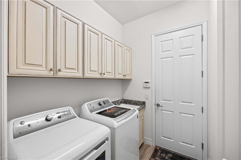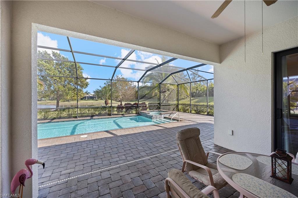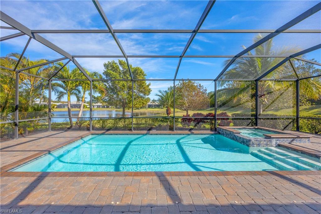 This lovely 3 bedroom 3 bath home, with a den easily converted to a 4th bedroom, is situated on a cul de sac in a pretty residential neighborhood in North Naples. The house is well protected from any weather concerns with a stand-by generator, impact glass doors and windows, and a lanai Storm Smart hurricane screen which offer peace of mind to the full-time or seasonal resident. Equipped with Smart Home Technology, upgraded lighting and fans, natural gas available for heating the pool as well as the kitchen cooktop, outdoor grill, clothes dryer, and tankless hot water system, the homeowners have an ease of living that is appreciated by the whole family. Extra shelving in the closets. and custom built-in storage in the garage provide a convenient solution to the many extras a family accumulates. The beautiful lanai, pool, and spa are enclosed by lush landscaping and invite family and friends to enjoy warm sunny days and spectacular sunsets in true Florida style. A small adjacent pond attracts abundant bird life to the area adding to the ambiance. An outdoor kitchen with gas grill and bar fridge complete the picture of a personal oasis of relaxation. LaMorada is a small residential community located near top rated schools, and Founder's Square with its numerous dining, shopping, medical, and service opportunities. The residents enjoy many club activities including tennis, pickleball, bocce ball, swimming, and their own pool bar and restaurant.