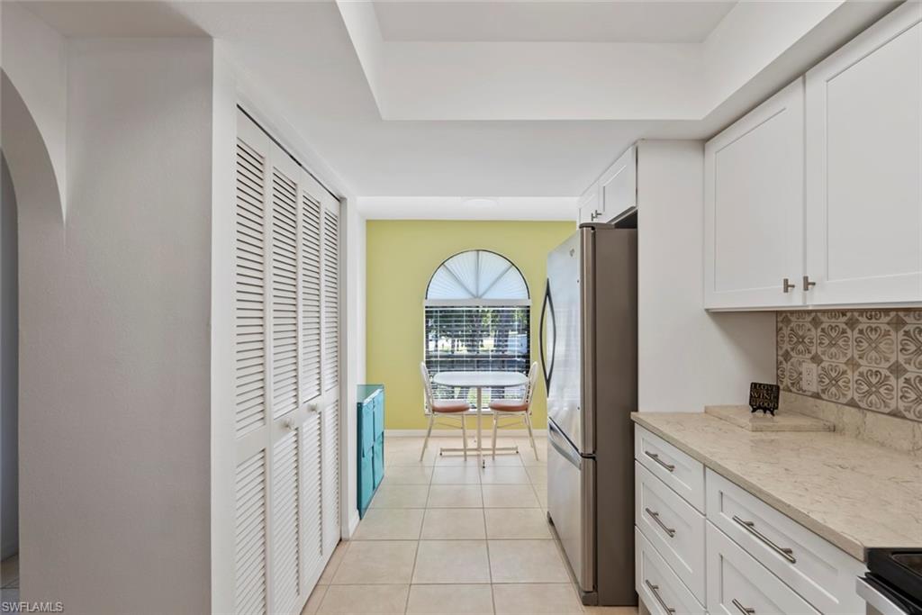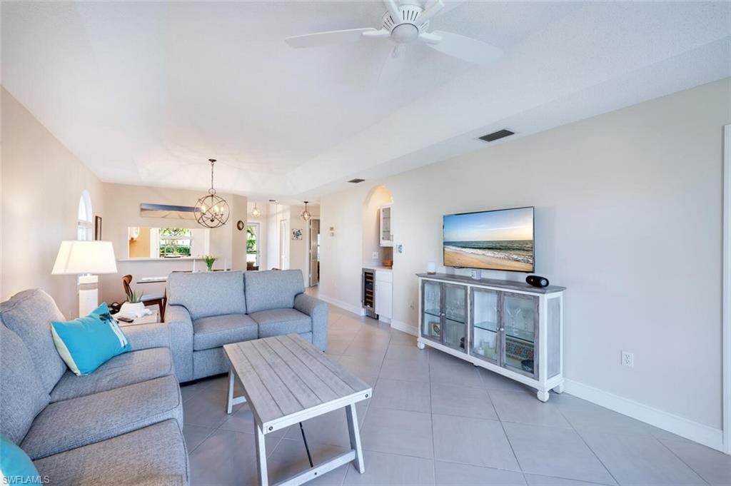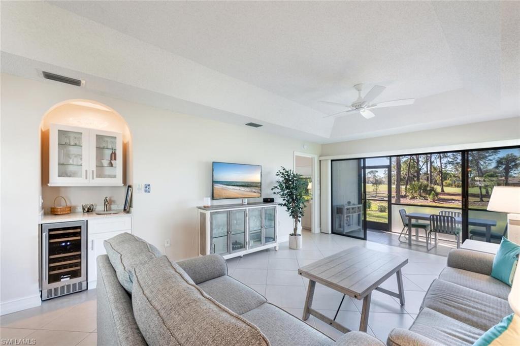 Welcome to this first-floor, pet-friendly THREE bedroom, 2 bath END UNIT featuring impact windows with Hunter Douglas window treatments throughout plus TWO PARKING SPACES one of which is covered! The screened lanai, equipped with an electric hurricane shutter, provides a relaxing retreat and the ideal spot for enjoying morning coffee or evening sunsets. The renovated kitchen boasts a convection oven/microwave oven, ample cabinet space, new lighting, and tile flooring that extends throughout the entire condo. Entertain with ease at the modernized wet bar, complete with a wine cooler, while enjoying the open flow of the living space. The primary suite is a private oasis with an updated bathroom featuring contemporary fixtures. The HOA quarterly fees include flood insurance (this policy satisfies the required coverage for a mortgage) as well as water, sewer, cable and WiFi! Rentals are allowed 2x a year, 30 day minimum. Whether you’re seeking a year-round residence or a seasonal retreat, this condo is move-in ready. Don’t miss this opportunity to own a THREE BEDROOM condo centrally located, only MINUTES TO DOWNTOWN NAPLES with fabulous shopping, restaurants and beaches close-by.
