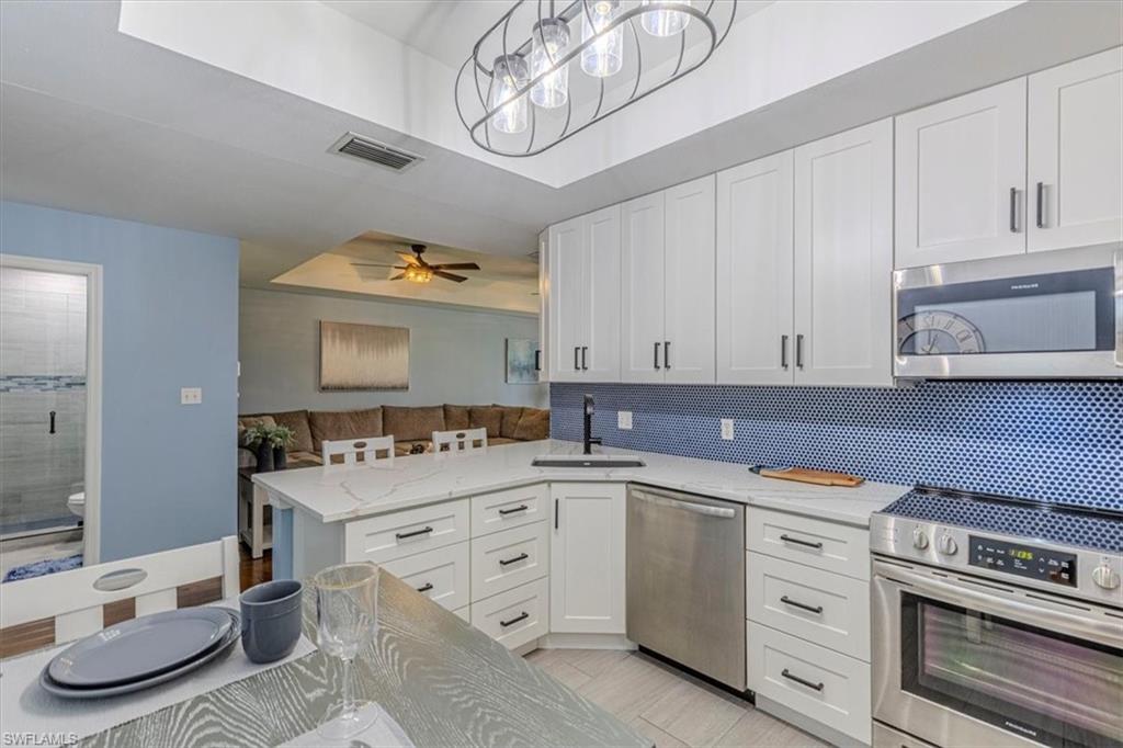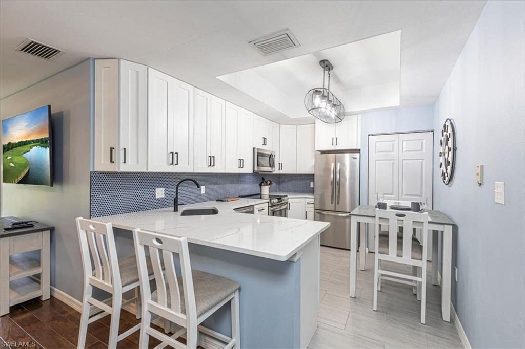 Bright & Airy Top-Floor Corner Condo in Prime Location! Welcome to this stunning 2-bedroom, 2-bathroom condo. Nestled in a highly desirable location, this home offers easy access to shopping, dining, medical facilities, and endless recreational activities Modern kitchen features sleek quartz countertops, stainless steel appliances, and soft-close cabinetry. The open-concept dining and living areas are accentuated by a high tray ceiling. Both bathrooms have been updated with granite countertops and soft-close cabinetry. One of the standout features of this home is the private screened lanai, where you can unwind and take in the breathtaking sunset The community recently renovated (2023) pool, spa, and beautiful new pavers, Outdoor enthusiasts will love the safe sidewalk walking paths and dedicated bike lanes, while golf lovers will appreciate the short drive to renowned golf courses. Pickleball enthusiasts will be thrilled to be near the US National Pickleball Center, featuring an impressive 65 courts. And let’s not forget the beaches! This condo is just a short drive (<7 miles) to some of Florida’s most beautiful white sandy shores, as well as the vibrant energy of downtown’s theatres, fine dining, and shopping districts along 5th Avenue and 3rd Street Location, location, location! Whether you're seeking a primary residence, vacation getaway, or investment property, this contemporary condo delivers the best of Florida living—style, convenience, and an unbeatable setting.