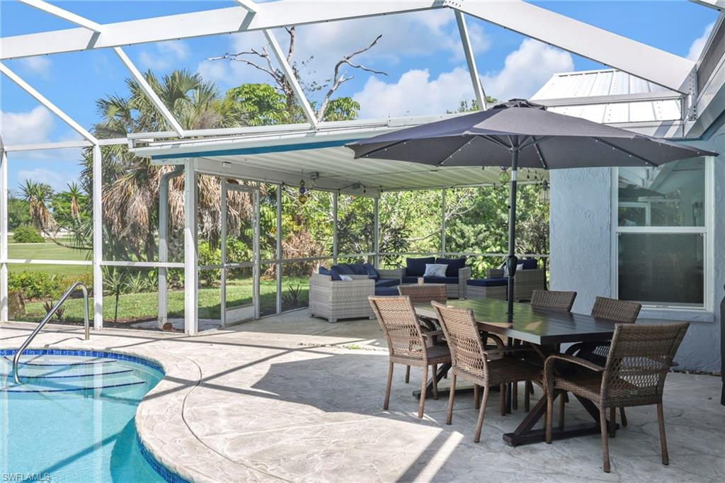 Welcome to 109 Doral Circle — a well-maintained 3-bedroom plus bonus space, 2-bathroom pool home located in the heart of East Naples. Offering 1,903 square feet of living space on an oversized lot with peaceful water views, this home delivers functionality, flexibility, and Florida charm. The updated kitchen features granite countertops and stainless-steel appliances, flowing into a light-filled dining area that opens directly to a screened lanai. North-facing pool with a sun shelf and child safety fence. There is room in the lanai for a full outdoor dining table, grill, or future outdoor kitchen.This is perfect for lounging or entertaining year-round. A versatile bonus room offers ideal space for a home office, den, or playroom. Outside on the right side of the home, the fully fenced backyard includes a small sitting area and plenty of space for pets. On the left side of the home, a separate fenced-in storage area is perfect for a jet ski, kayaks, beach gear, or tools. The home also has a 2-car garage. All this with an incredibly low HOA of just $100/year. Conveniently located minutes from 5th Avenue, schools, and both public and private golf options — this is a fantastic opportunity to enjoy the best of Naples living.