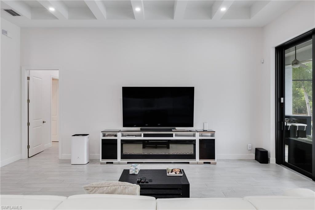 2025 LUXURY NEW CONSTRUCTION ESTATE ON 2.27 ACRES IN NAPLES’ COVETED LIVINGSTON WOODS! A rare opportunity to enjoy the privacy of acreage with no HOA—offering endless possibilities to add additional amenities or living space! Enjoy peaceful, South-facing wooded views surrounded by natural beauty. This contemporary masterpiece features 4,960 sq ft under air, 5 bedrooms + separate den/flex room, 5.5 baths, a 3-car garage, a whole-house reverse osmosis water system, hurricane-impact windows and doors, and a metal roof. Every detail was thoughtfully curated—from the wood-look tile flooring and soaring ceilings with rich custom wood beams to the modern chef’s kitchen featuring quartz waterfall countertops, dual-toned white and walnut cabinetry, stunning wood paneling accents, high-end appliances, and a hidden butler’s pantry. The formal dining area is ideal for entertaining, complete with two beverage coolers and custom built-in counters and shelving, while dual living areas each feature electric fireplaces. Step outside to your private outdoor oasis with an expansive entertainment deck, resort-style pool with tanning shelf and bubbler features, spa, summer kitchen, and covered lounge area with fireplace—perfect for gatherings or relaxed al fresco dining. The luxurious primary suite offers direct access to the pool deck and a spa-like bathroom adorned in marbled tile, complete with dual vanities, an oversized shower, and a freestanding soaking tub. Additional highlights include a private gated entry and electric vehicle charger. Livingston Woods is the perfect setting to enjoy peaceful acreage and convenience—located in an “A-rated” Collier County school district and minutes from Vanderbilt Beach, Waterside Shops, Mercato, and the world-class shopping and dining of 5th Ave and 3rd Street South.