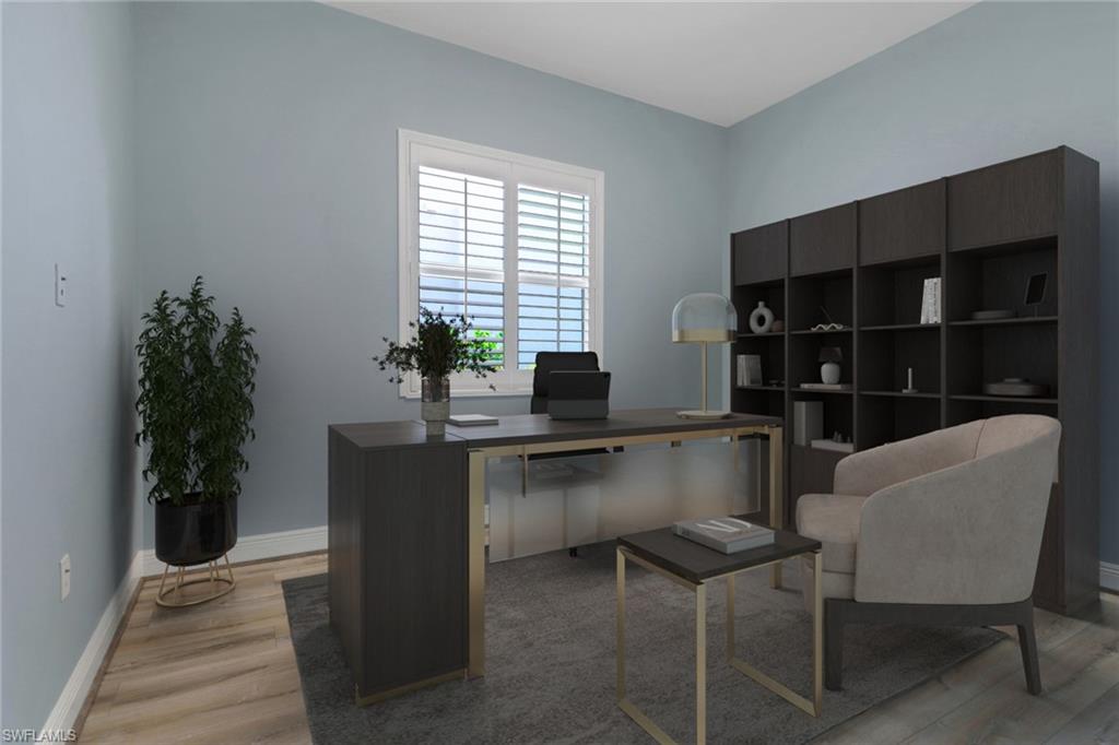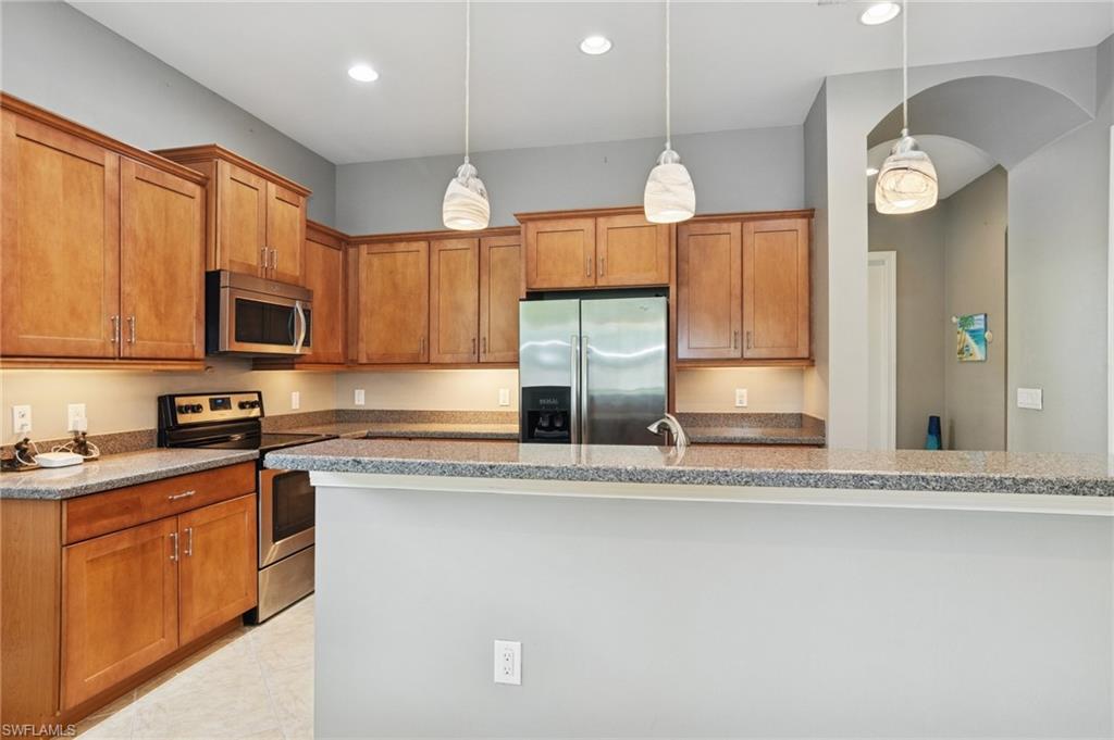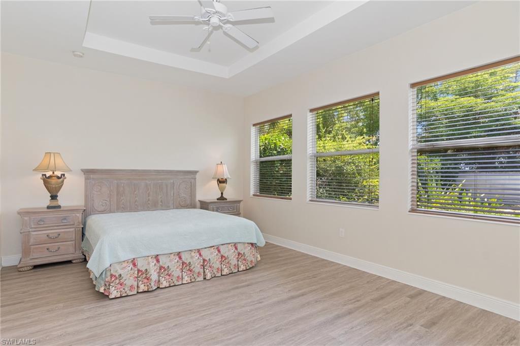 Welcome to your dream home in North Naples! Located in the gated community of Manchester Square, this exquisite one-story residence, built in 2013, offers modern design and luxurious features. With 4 spacious bedrooms plus a den, 3 bathrooms, and a two-car garage with an extended driveway, it’s ideal for families and entertaining. Set on a premium oversized, central lake lot, enjoy stunning sunsets from the expansive, fully screened lanai. Inside, a bright, open floor plan connects the kitchen, living room, and dining area seamlessly. The oversized primary bedroom serves as a true retreat, highlighting an en-suite bathroom with a soaking tub, large walk-in shower, dual vanities, and a new custom walk-in closet. The second-largest bedroom includes a private en-suite, while the third and fourth bedrooms share a guest bathroom, making it perfect for family and guests. The gourmet kitchen is a chef’s dream, equipped with granite countertops, stainless steel appliances (including a new dishwasher), under-cabinet lighting, and 42-inch custom cabinetry with soft-close drawers. Convenience is key with a full laundry room off the garage, boasting a washer, dryer, sink, and custom cabinetry. The home is safeguarded with complete Hurricane IMPACT windows and doors, along with storm shield hurricane-rated exterior screens for added protection. Enjoy outdoor living year-round on the extended screened patio, surrounded by lush landscaping that enhances curb appeal. With over $65,000 in upgrades, additional highlights include a custom design glass front door, plantation shutters, high-hat lighting, 8-foot doors, ceiling fans, and elegant tray ceilings throughout. Community amenities feature a resort style pool, fitness center, basketball courts, and a clubhouse, all with low HOA fees that include cable and internet. Just minutes from I-75, Vanderbilt Beach, and Mercato shops, this property offers not just a home, but a vibrant lifestyle. With its prime location, fantastic amenities, and luxurious upgrades, this residence is a must-see! **Some photos in this listing have been virtually staged**