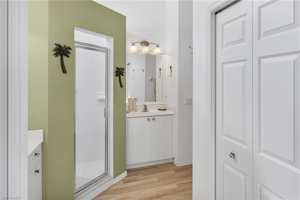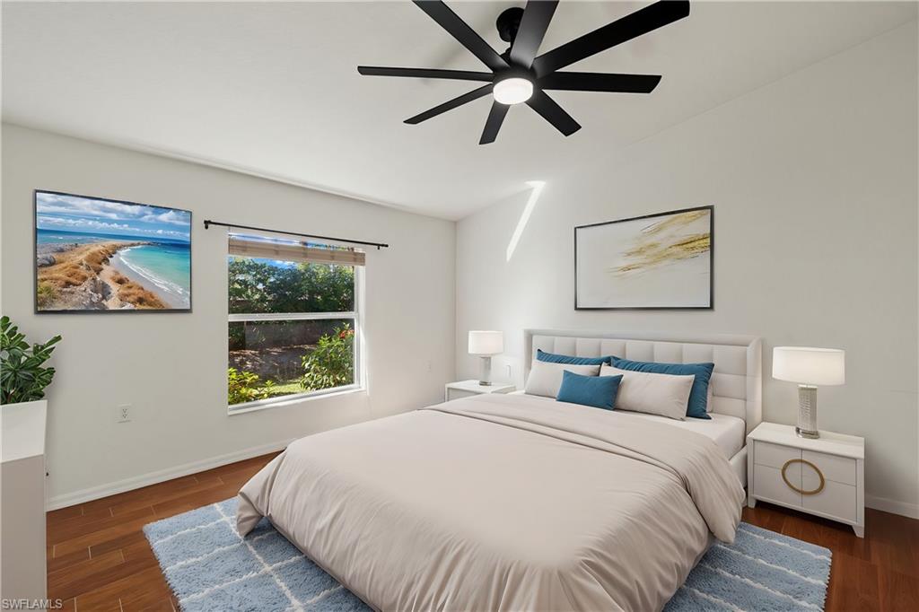 Beautifully updated 3/2 great room Villa home in intimate gated community of only 71 homes. Recent upgrades include all new appliances – sinks and fixtures, all new lighting, switches, electrical outlets, and plates, blinds, freshly painted including garage & garage floor, with new laminate flooring throughout. Bathroom improvements include all new fixtures – bathtub, shower door, wall tile, high gloss, contemporary vanities with quartz countertops, medicine cabinet, and toilet. The extended lanai with Southern exposure on the lake makes this the perfect place to relax and enjoy maintenance, free affordable living. No flood insurance needed and roofs are only 4 years old. Low quarterly HOA fees, only 71 Villas, gated and pet friendly. 6 miles to downtown Naples & close to East Naples pickleball.