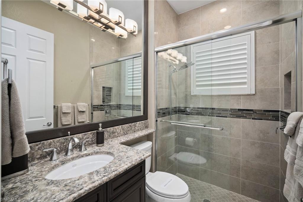 Nestled in the heart of Naples, this enchanting 3 bedroom's plus den, 2.5 bathrooms lakefront property offers a symphony of luxurious features and community amenities that promise an unparalleled lifestyle experience. As you step inside, the home reveals a harmonious blend of custom upgrades, including a cozy fireplace, bespoke bookcase in the den, and custom designed closets, with elegant wood and tile floors beneath coffered ceilings adorned with crown molding. The light dances through hurricane windows, showcasing breathtaking lake views and beckoning you to the extended screened enclosure, perfect for evenings of serene reflection. Culinary enthusiasts will revel in the large open kitchen with granite counter tops, new state-of-the-art Bosch appliances that grace the kitchen, and brand new washer and dryer, and Air conditioner 1 year new. While the community provides endless opportunities for recreation and relaxation. Whether it's enjoying a game of tennis, pickle ball, or bocce, indulging in the community pool, spa, or hot tub, or engaging in a spirited match on the volleyball court, there's something for everyone. The vibrant community ceaselessly buzzes with life, offering a clubhouse, business center, and access to scenic bike and jog paths. Families and social butterflies alike will appreciate the proximity to shopping, restaurants, schools, a nearby hospital, and a county park, all just a leisurely stroll away. Enjoy peace and tranquility, making this residence not just a house, but a dream home awaiting its next chapter.
