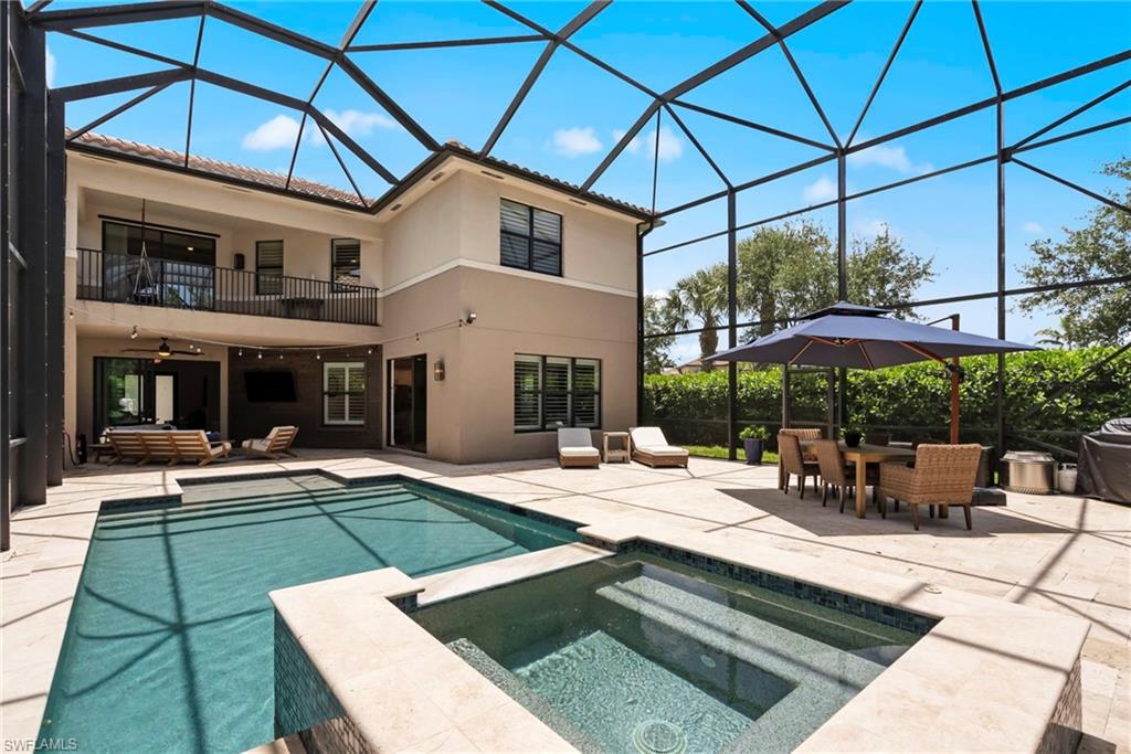 Welcome to this rarely available Merlot model home located in the highly sought-after gated community of Marbella Isles. This beautifully maintained, original-owner residence offers 5 spacious bedrooms, 4 full bathrooms, and a 2-story layout, including the primary suite and an additional bedroom on the main floor. Enjoy the ultimate Florida lifestyle with your private, fenced-in pool and spa, ideal for entertaining or relaxing year-round. Inside, the home is immaculately clean and meticulously cared for, featuring generous living spaces, high ceilings, and a 3-car garage. Community amenities include a resort-style clubhouse with pool, spa, fitness center, tennis courts, pickleball courts, bocce ball, indoor basketball court, and a children’s water park and playground. The community is gated with 24-hour guard service plus a private resident-only entrance for added convenience. Located in a top-rated school district and just minutes from Waterside Shops, Mercato, 5th Avenue, Southwest Florida International Airport, and Naples' pristine beaches, this home truly offers the best of luxury, location, and lifestyle. Don’t miss your chance to own this rare gem in one of Naples' most desirable communities!