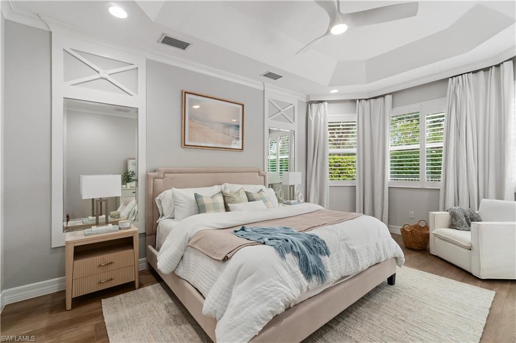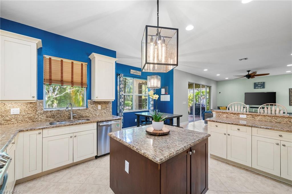 Stunning Lakefront Pool Home in Marbella Lakes – Fully Renovated with Over $250K in Designer Finishes and Upgrades! This 4bed + loft/den, 4-bath home offers Luxury living with Wide-Plank LVP flooring, 14’ tray ceilings, and Crown molding throughout. The open-concept Chef’s kitchen features White Shaker High End Wood cabinets, level 5 Quartz countertops, Monogram appliances, walk-in pantry, and a massive 8’ Island. The spacious Primary suite boasts Lake views, a coffered ceiling, Dual Quartz vanities, a soaking tub, and a Glass barn-door shower. Enjoy the Newly resurfaced heated Saltwater Pool, new paver deck, and screened lanai—ideal for entertaining. Garage features custom SwissTrax flooring. Whole-home Water Filtration System included. Marbella Lakes offers low HOA fees with access to world-class amenities including a resort-style pool, modern fitness center, tennis and pickleball courts, basketball, billiards, a children’s play area, and an active social calendar. Don't miss this rare opportunity to own a meticulously renovated lakefront pool home in central Naples—minutes from beautiful beaches, shopping, dining, and top-rated schools.