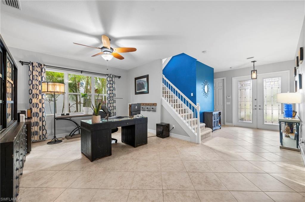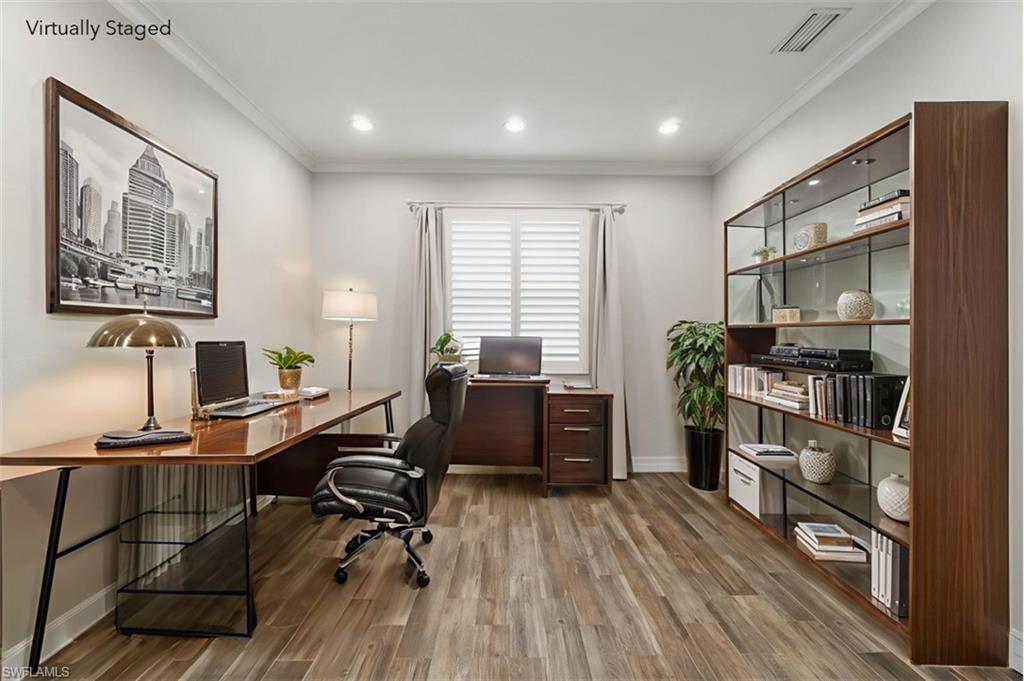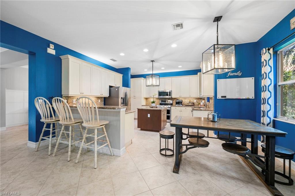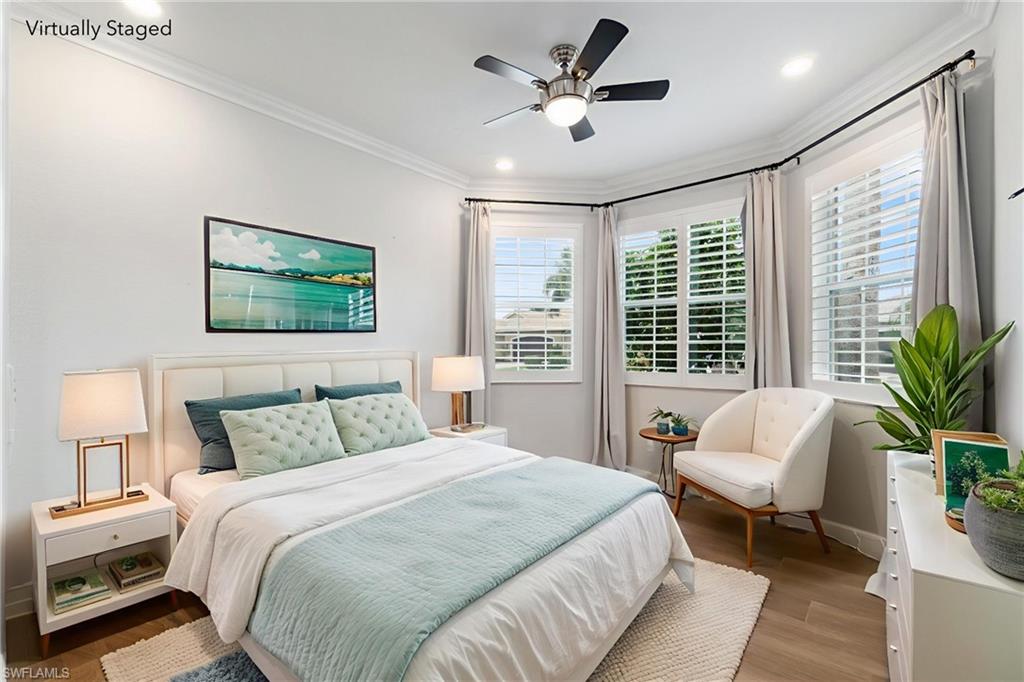 Welcome to this beautifully crafted 5-bedroom + den, 4-bath home in one of Naples’ most sought-after communities, Marbella Lakes. Built in 2010, this residence blends thoughtful design, modern updates, and everyday livability in an inviting, family-friendly layout. Step inside to a bright and open main level, refreshed with wide-plank wood-look Cortec flooring that carries throughout the living spaces with both style and durability in mind. The first floor offers exceptional flexibility, featuring a private guest bedroom, full bathroom, and a dedicated home office—perfect for visitors, remote work, or additional living space. At the heart of the home, the kitchen is a standout transformation fueling both form and function. Anchored by a stunning quartz waterfall island, elevated by sleek shaker cabinetry, and re-envisioned for effortless flow, this space is designed for gathering, entertaining, and day-to-day enjoyment. Upstairs, rich Brazilian walnut flooring leads to a thoughtfully designed second floor where the primary suite and additional bedrooms are all together—an ideal arrangement for keeping loved ones close. The oversized primary retreat offers a serene escape with generous proportions and a layout that inspires comfort and relaxation. Outside of the home, Marbella Lakes delivers a true lifestyle community, complete with resort-style amenities, social spaces, and access to top-rated schools, making it the perfect place to truly live, play, and thrive.
