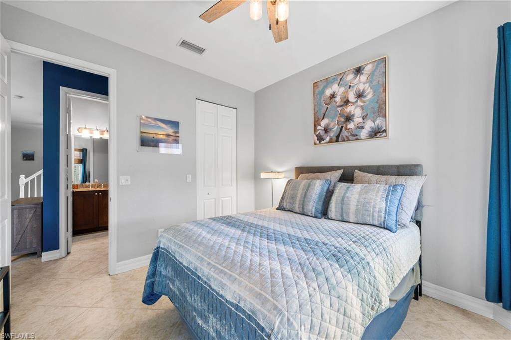 Welcome to the pinnacle of resort-style living in the prestigious Marbella Lakes community, just minutes from the heart of Naples. This exquisite end-unit Napoli model offers 3 bedrooms plus a den, 2 ½ baths, 2,288 square feet, and a 2-car garage. Thoughtfully updated, every surface has been refreshed, including painted walls, trim, ceilings, doors, and garage. The ceramic floors, including the lanai, have been professionally cleaned and sealed, and the lanai itself pressure-washed for a fresh start. Closets have been upgraded with custom California Closet Systems, while new lighting fixtures elevate the foyer, dining area, bathrooms, and stairway, complemented by energy-efficient LED recessed lighting throughout. The kitchen and baths have been beautifully transformed with freshly painted white cabinetry, new quartz countertops, marble backsplash, sinks, and faucets. The primary bath features an updated shower (2024), resurfaced bathtubs, and three new toilets (2023). New Hunter Douglas soft shades replace blinds in every room, and all bedrooms and the den feature new ceiling fans. New High-quality carpet graces the stairs, bedrooms, and den, while the laundry room has been enhanced with cabinets in place of wire shelving. Major updates include a new AC system with humidity control, a full suite of new appliances (2023–2024), and accordion hurricane shutters for nearly every window and lanai. Beyond the home, Marbella Lakes offers an unparalleled lifestyle. The 8,000 sq. ft. lifestyle center includes an indoor sports complex, fitness center, billiards and game room, social hall, and resort-style pool and spa with an oversized sundeck. Residents also enjoy tennis and pickleball courts, along with a full-time social director who organizes events and activities year-round. With onsite management, vibrant community life, and top-notch amenities, Marbella Lakes is the perfect place to call home—whether for families, couples, or singles seeking an active Naples lifestyle.