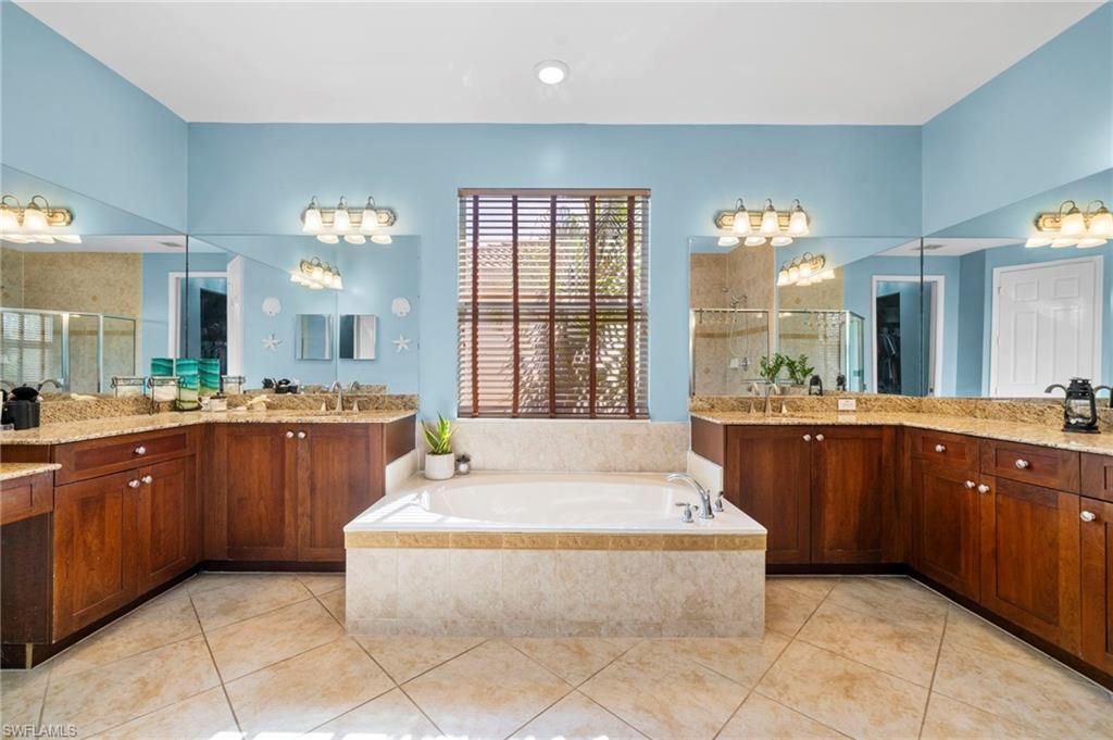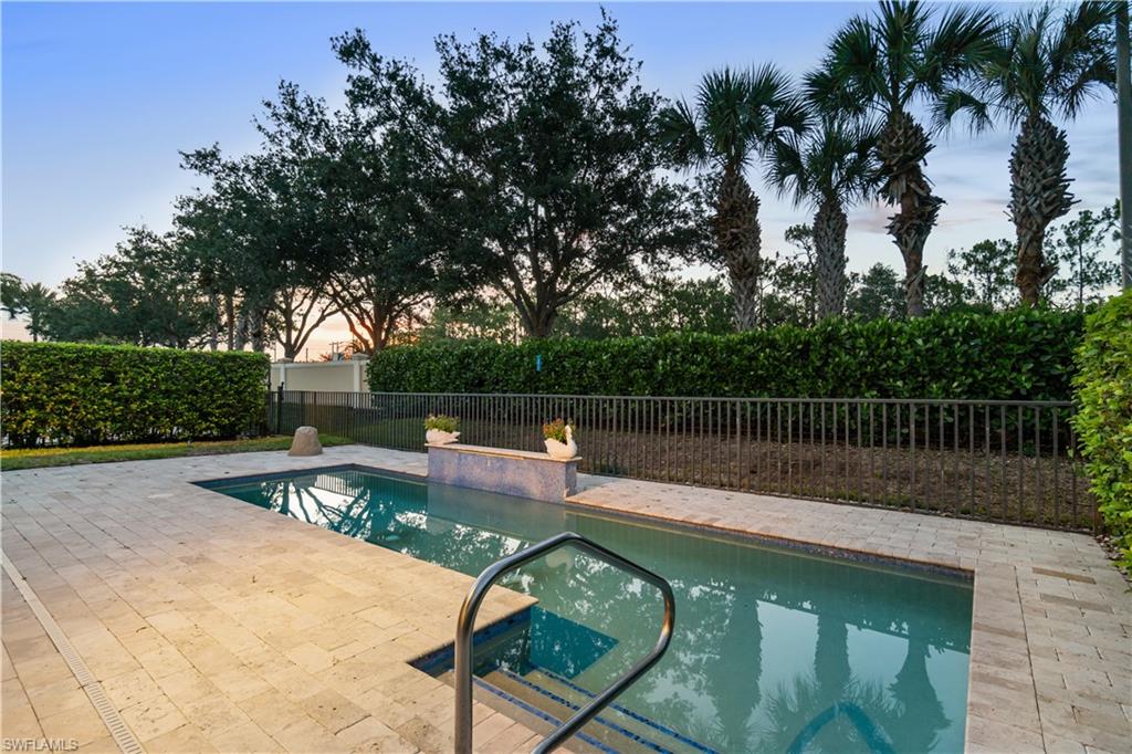 Experience the perfect blend of luxury and resort-style amenities in this expansive two-story, five-bedroom, four-bath residence in Marbella Lakes, all within a short drive to sun-drenched Gulf beaches, downtown Olde Naples, Mercato, world-class golf courses, and top-rated schools. Luxurious upgrades abound, including engineered hickory scraped wood flooring, plantation shutters, and a custom stone wall in the entryway with designer alcoves that make a striking first impression. With multiple living areas, including a living room, a spacious great room, and an upstairs loft/recreation space, this home provides plenty of room for both gatherings and private retreats. The screened lanai is a true oasis, offering the serenity and amenities of a private resort. At its heart is a custom saltwater heated pool with a cascading waterfall, enhanced by state-of-the-art lighting that creates an enchanting ambiance day or night. Surrounding this centerpiece is a spacious seating area with a fire pit, offering the ultimate space for relaxing or entertaining. The beautifully updated master ensuite bath includes a soaking tub, dual vanities, and a generously sized walk-in shower that adds a spa-like touch to your daily routine. On the first floor, a generously sized bedroom with an adjoining bath provides the perfect accommodation for guests, in-laws, or an au pair, ensuring privacy and comfort for all. Every detail has been considered, from hurricane-impact front door glass and tinted windows for security and efficiency to whole-house electrical surge protection and a 220-volt electric car outlet for modern convenience. Recent essential updates, ensuring peace of mind for years to come include new A/C units replaced in 2019 and 2021, the pool’s waterfall and filter pumps are updated, the master and upstairs bathroom floors have been refreshed, and the roof was professionally cleaned in 2023. The community amenities include two new pickleball courts, updated tennis and basketball courts, a state-of-the-art fitness facility, a game room, a luxurious pool and spa, and an on-site lifestyle director and property manager. Don’t miss this rare opportunity to enjoy luxurious living in a prime location!