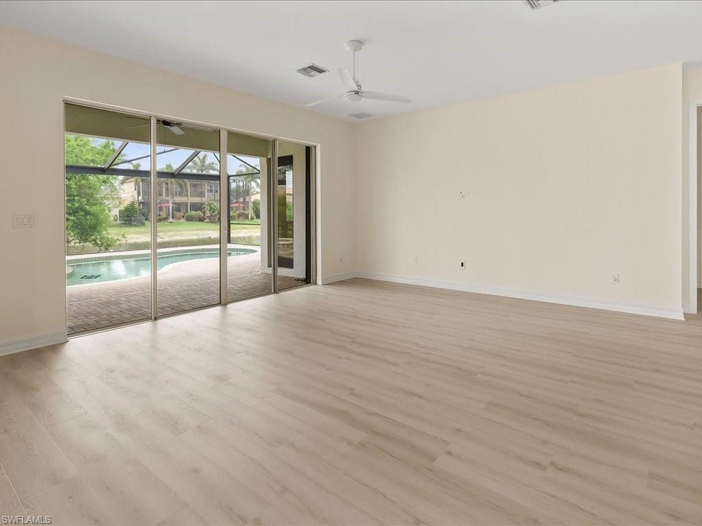 Welcome to 6491 Marbella Drive, a beautifully upgraded single family home nestled in the sought after gated community of Marbella Lakes. This elegant Barcelona model offers 3 spacious bedrooms plus a versatile den, 3 full bathrooms, and a 2 car garage - all thoughtfully designed across 2,189 square feet of living space. Enjoy serene lake views from your private custom pool and spa, surrounded by an expansive paver lanai with a sun shelf perfect for lounging along with a Picture Window Screen. Inside the home boasts all new flooring, fresh neutral interior paint and a modern kitchen featuring quartz countertops, a counter level bar, new stainless steel appliances and a sleek sink and faucet. Meticulously maintained by the original owner, this home combines style, comfort and peace of mind. Additional upgrades include New AC system (2024), New Water Heater (2023), Hurricane Shutter Protection, Bluetooth enabled garage door tracking system (2024) New Pool Pump (2025) Updated lightning fixtures in bathrooms and dining area. Located minutes from Naples world -class beaches, shopping and dining. Marbella Lakes also offers resort style pool, inside and outside basketballs courts, two tennis courts , children's pool and play area , fully equipped gym and a club house all for a low HOA Fee.