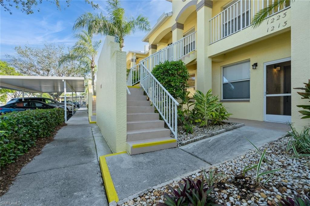 Brand New HVAC system installed!!!This beautiful 3-bedroom, 2-bathroom condominium is located on the second floor and offers breathtaking southern views of the Hammock Bay Golf Course. As an end unit, it is flooded with natural light. The spacious living area boasts vaulted ceilings, creating an open and airy feel. Elegant laminate wood flooring flows throughout with carpet in the bedrooms. Enjoy the screened lanai at the front and rear—ideal for sipping morning coffee, reading, or hosting guests amidst beautiful surroundings. With a washer/dryer conveniently located in the unit. Community pool located nearby for convenience and comfort. Covered parking provides protection for your vehicle, and the condo's prime location between Marco Island and Naples puts you near stunning beaches, upscale shopping, and fine dining options. This property offers the perfect blend of relaxation and luxury, making it more than just a home—it's a destination where every day feels like a vacation. Welcome to Fairways at Marco Shores!