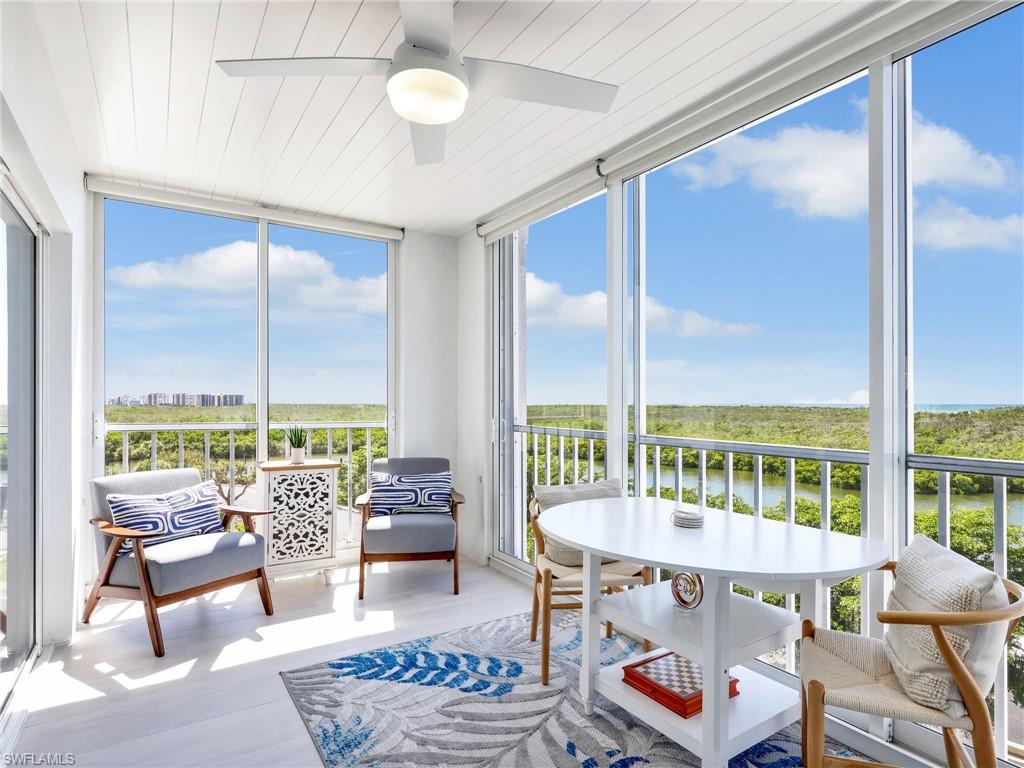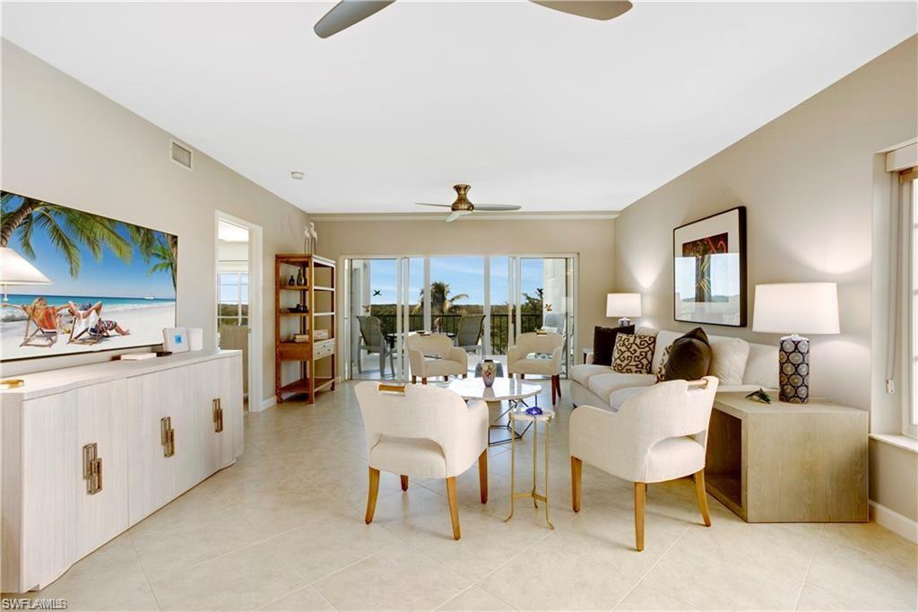 NORTH NAPLES GEM---PRICED TO SELL--- YOUR BAYSIDE COTTAGE AWAITS...this wonderful retreat situated on the 2nd floor lives more like a home than a condo with the pool, spa, grill area, & community room all on the same floor just steps away! --EXCLUSIVE ONLY TO THE 2ND FLOOR is a spacious open 2nd balcony (9' x 30'/270SF)! So not only does this condo have an enclosed Four Seasons Room/Balcony (13' x9'/117 SF) with sliders to let in the gentle breezes and multi purpose use, it also has a private, open balcony to allow for additional entertaining space, basking in the sun, plus wonderful views of the Ever-Changing Florida Sunsets/Sky and Dolphins playing in the bay! YES, REAL OUTDOOR SPACE!!! --This immaculate condo has been well cared for by it's original owner and boasts water views from the moment you enter the home, an abundance of natural light, tile throughout, plantation shutters, Aqua Plex Re-pipe in 2021, Bosch refrigerator 2020, GE microwave and range 2020, Bosch dishwasher, LG washer/dryer, Grand air handler 2019, crown molding, tall baseboards, storm shutters on sliders and back windows! --Your Spacious Primary Oasis has sliders out to the balcony, beautiful bay views, and custom closet cabinetry. The Primary bathroom has had tub taken out and replaced with a large, custom tile/glass door walk-in shower, dual sinks, quartz stone counters, updated plumbing/lighting fixtures, and additional closet in bathroom. The Guest Bathroom also has been renovated with beautiful palm textured painted walls, quartz counters, new plumbing/lighting fixtures, custom tiled shower/glass shower doors. --INCLUDES A COVERED PARKING SPOT#66 /STORAGE #207 + FOR AN ADDITIONAL $25,000 YOU CAN PURCHASE A RARELY AVAILABLE UNDER BUILDING PARKING SPOT #50 (everyone in the building wants it!) --This North Naples gem is nestled among multi-million $$$ homes/condos, a brand new golf course across the street, the swaying palms, bay, marina, and Wiggins pass in the gated, prestigious Marina Bay Club of Naples. The well cared for, financially sound building offers tennis/pickle ball, kayak/board storage and launch area, huge community pool/spa, BBQ area, community room, and friendly residents! --A bike ride to the beach to sink your toes in the soft sand of the Top Rated Vanderbilt Beach /Delnor Wiggins State park, dine on the beach at Baleen or the Turtle Club, a short drive to fine dining, shopping, entertainment at the Mercato or Coconut Point Malls or 5 th Avenue in Olde Naples, and 30 minutes to the airport! --There are 2 nearby private clubs available to join, Tarpon Cove across the street and Pelican Ilse next door, with many amenities including a fitness center and pontoon boat shuttle to the beach. SOLD PARTIALLY FURNISHED: Primary bed set, 1 twin guest bed, dining table/4 chairs & furniture in Living Rm. NO HURRICANE DAMAGE! WELCOME TO YOUR BAYSIDE RETREAT!