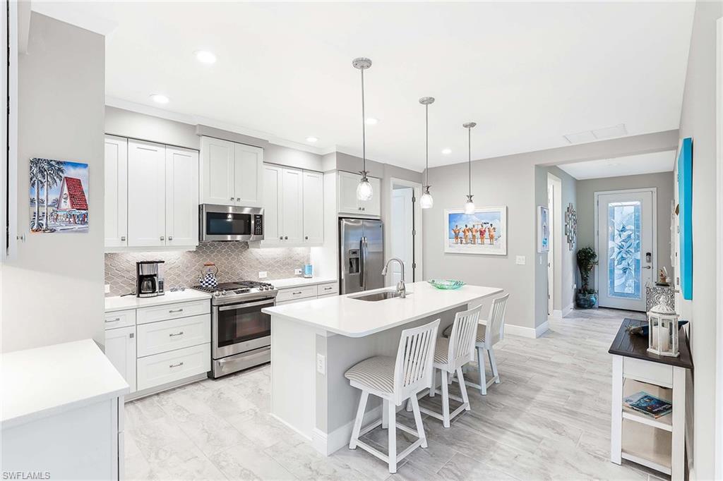 Nestled within the prestigious enclave of Marquesa Isles in Naples, this exquisite TURNKEY villa offers an unparalleled opportunity for refined living. Featuring two bedrooms, a den, and two bathrooms, this residence perfectly blends modern elegance with comfort and style. At the heart of the home lies a stunning kitchen, where culinary dreams come to life—complete with stainless steel appliances, quartz countertops, and a beautiful backsplash that enhances the space’s sleek design. Step outside to the expansive lanai, an outdoor oasis ideal for alfresco living at its finest. Whether you’re enjoying your morning coffee, entertaining guests, or simply basking in the Florida sunshine, this inviting space provides the perfect backdrop for year-round enjoyment. With its contemporary design, upscale finishes, and prime Naples location, this turnkey villa is a must-see new listing that promises effortless living and lasting memories.