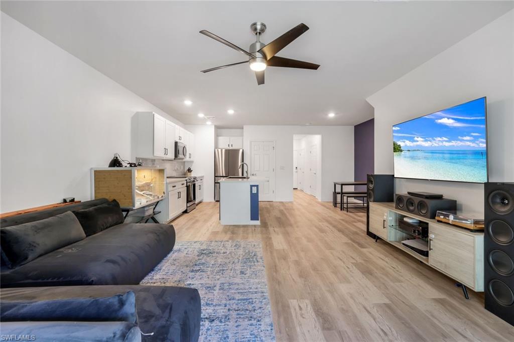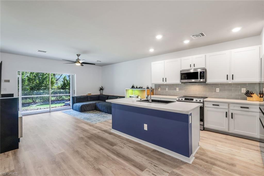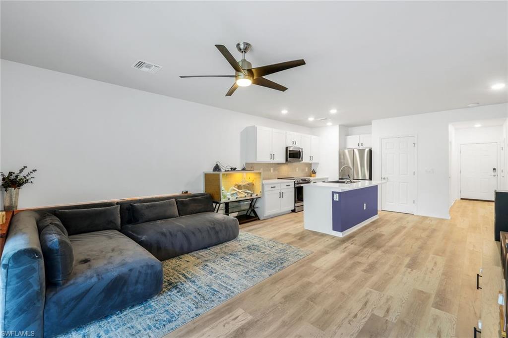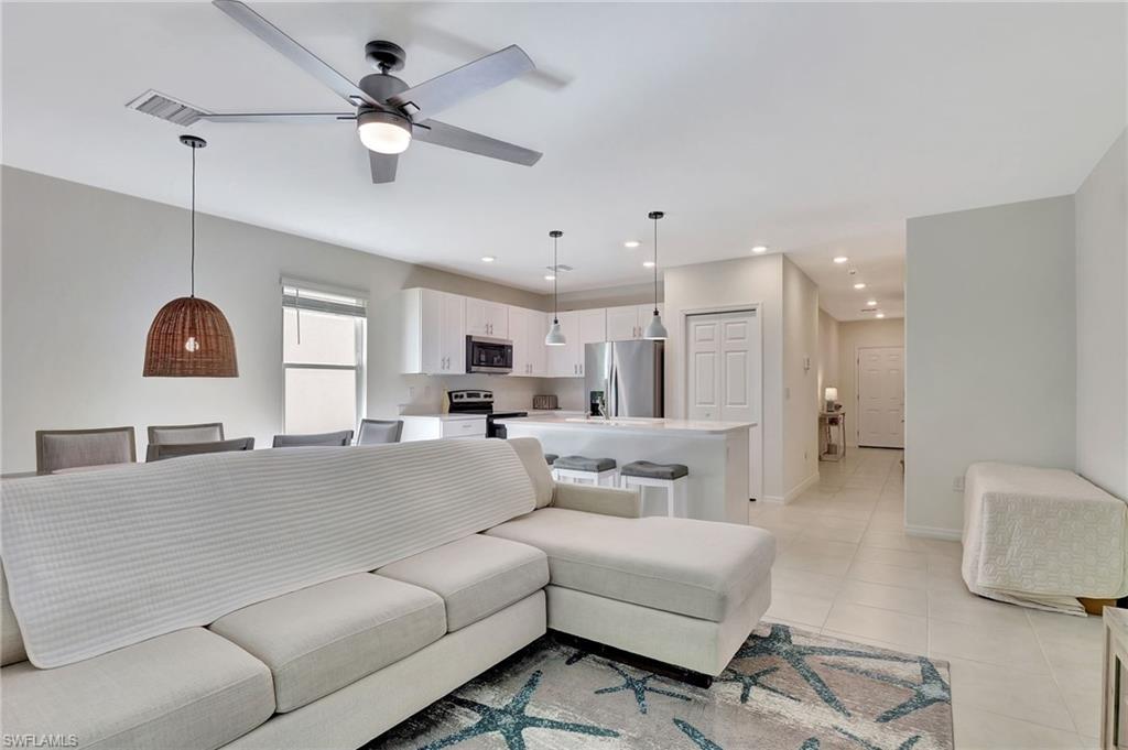 Welcome to this beautifully maintained and thoughtfully updated 2022 end-unit townhome in Meadowood, ideally located off Collier Blvd—just minutes from shopping, dining, entertainment, and Naples' stunning beaches. Offering 3 spacious bedrooms plus a versatile den/office, this home combines newer construction with exceptional value. Step inside to fresh interior paint and new carpet upstairs. The open-concept kitchen features stainless steel appliances, quartz countertops, stylish pendant lighting, farmhouse sink and new faucets, while every room includes ceiling fans for added comfort. A mini split system in the garage and an ultraviolet air scrubber on the AC enhance air quality and efficiency. Even the lawn has been replaced for a fresh curb appeal. Upstairs, the split-bedroom layout offers privacy, with guest bedrooms connected by a Jack and Jill bath. The den/office provides flexible space for work or play. Enjoy resort-style amenities including a pool, fitness center, clubhouse, basketball court, and playground—all within a gated, pet-friendly community with low monthly fees. This impeccable home is priced to sell—don't miss your chance!