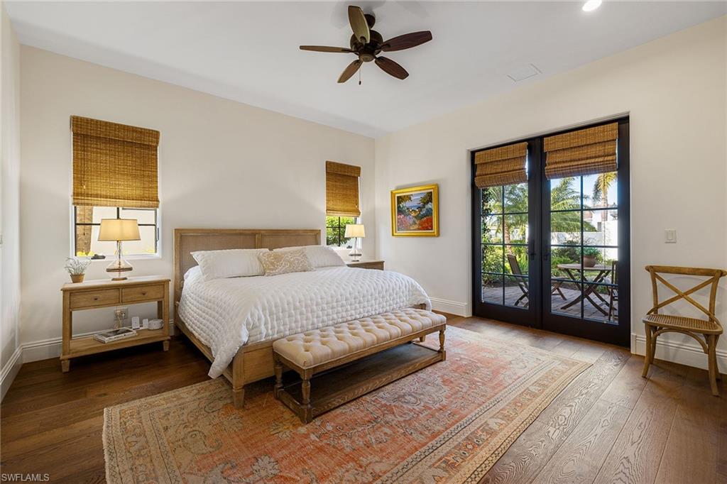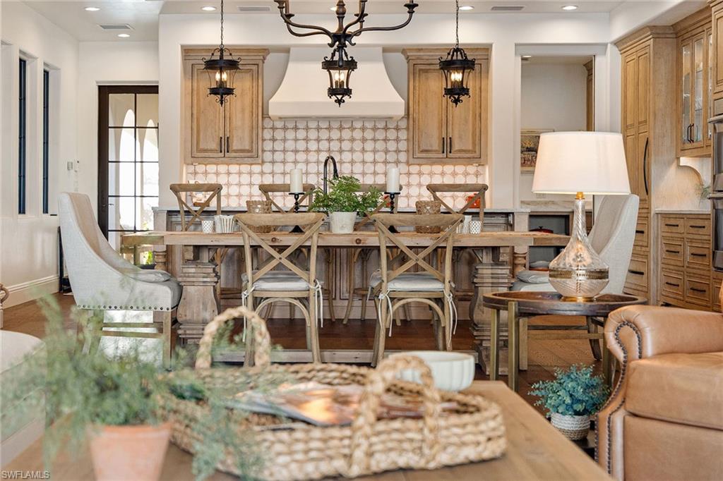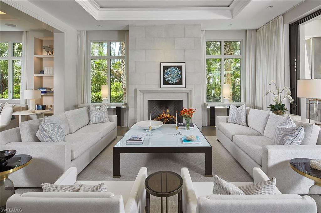 This authentic custom home, hand-crafted by BCB Homes in 2009, is on an extremely private .74-acre homesite within the prestigious Mediterra community. Offering over 6,600 square feet of luxurious living space, the residence features four bedrooms, four full baths, and one-half bath designed for elegance and comfort. The open-concept floor plan is ideal for entertaining family and friends, with a chef’s kitchen boasting top-of-the-line Viking and Sub-Zero appliances, a spacious center island, a well-appointed butler’s pantry ideal for catering and abundant custom cabinetry. The family room serves as the heart of the home and flows seamlessly into an impressive library adorned with vaulted wood-beam ceilings and a stone gas fireplace. The private owner’s suite is a serene retreat, highlighted by hand-scraped wood floors, an adjacent wood-paneled study, a white marble bath and dual custom closets. Outdoor living is equally impressive, featuring a large, covered lanai with a dining area, comfortable sitting space and a fully equipped outdoor kitchen. The outdoor oasis continues with a heated pool, raised spa and gas fire pit, ideal for year-round enjoyment. Additional features include a Lutron lighting system, a climate-controlled three-car garage, Andersen impact windows and doors, and a custom temperature-controlled wine cellar. Residents of Mediterra enjoy an unmatched lifestyle with access to two 18-hole Tom Fazio–designed golf courses, a full-service wellness and fitness center, and a newly refurbished Beach Club offering an elevated pool and Gulf-front dining on the white sands of Hickory Island. A world of luxury, privacy and craftsmanship awaits within this exquisite Mediterra estate.