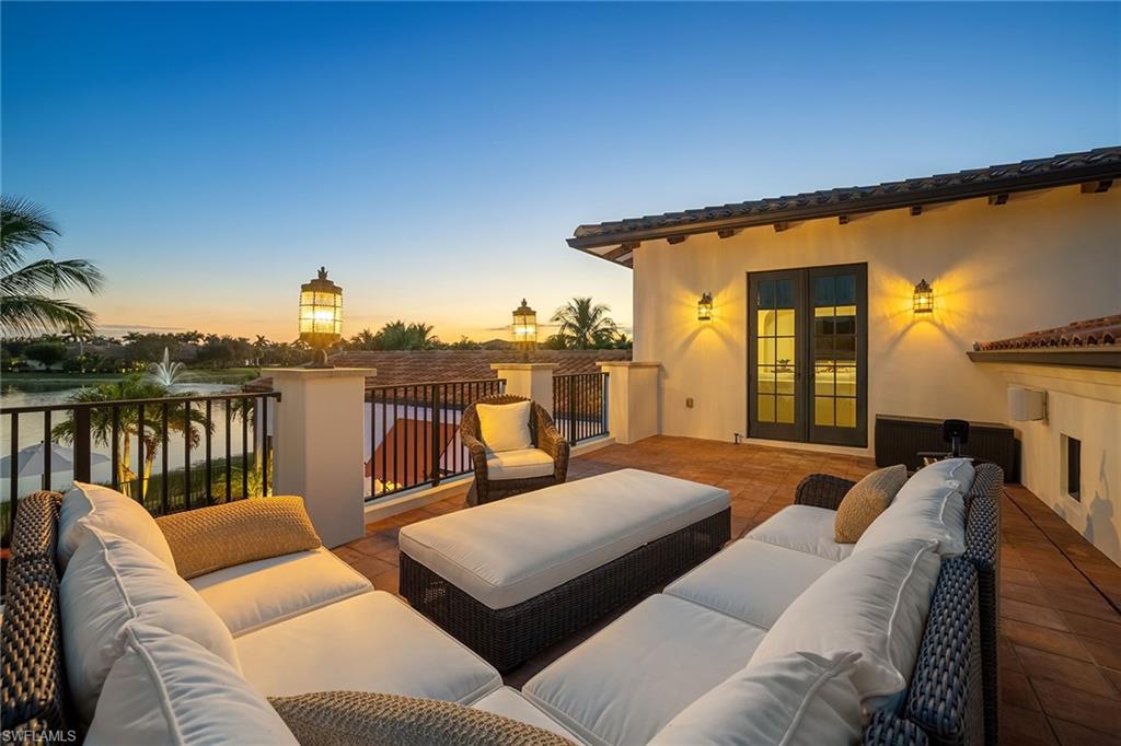 NO WAITING! GOLF MEMBERSHIP SLOT AVAILABLE IMMEDIATELY! - Located in the prestigious golf & country club community of Mediterra in Naples, Florida - This residence boasts expansive guest accommodations, including a convertible bonus family room with developer-provided plans to transform it into a full fourth bedroom! A true architectural masterpiece situated on an extraordinary 0.78-acre homesite—one of the largest and most sought-after parcels in all of Mediterra. Perfectly positioned with breathtaking views of the lake and the iconic 18th fairways of both the North and South championship courses, this estate lives like a private resort with unmatched scale, serenity, and sophistication. French oak flooring, soaring custom ceilings, premium millwork, and seamless indoor/outdoor transitions define over 5,100 sq ft of refined living space. The chef’s kitchen features Sub-Zero refrigeration, Wolf appliances, refrigerated drawers, a built-in hutch and bar display, and an oversized island, while a separate full-size prep kitchen offers dual Sub-Zero refrigerators, wine refrigeration, a coffee station, sink, abundant dry storage, and a dedicated workspace for discreet catering. Guest spaces are abundant, including an attached yet private casita wing that further elevates the estate, offering its own entry porch, convertible family room, two spacious guest bedroom suites (one with an attached bonus space ideal for a nursery, office, or playroom), plus a private lakeside lanai & garden courtyard. Resort-level outdoor living includes multiple living & lounging spaces, a heated saltwater pool with a sun shelf, custom water features, custom LED color lighting, electric roll-down screens, outdoor dining pavilion, premium Lynx gas grill, refrigerated drawers, prep sink, gas fireplace, and year-round sunsets thanks to the coveted southwest exposure. A homesite of this magnitude and grandeur is truly a rare gem in the community! Mediterra is a prestigious luxury golf & country club community featuring Two championship Tom-Fazio golf courses for avid golfers, multiple tennis courts, pickle-ball & bocce, fitness center, pristine bike & jogging trails, and luxurious dining at the private country club restaurant. The Mediterra Beach Club offers an escape to a 10,000 sq. ft two-story private oceanfront paradise on the Gulf of Mexico. Featuring a restaurant & bar that serves members via indoor & outdoor dining, this private facility boasts a heated swimming pool, a sundeck, and cabana beach service for chairs, umbrellas & refreshments.