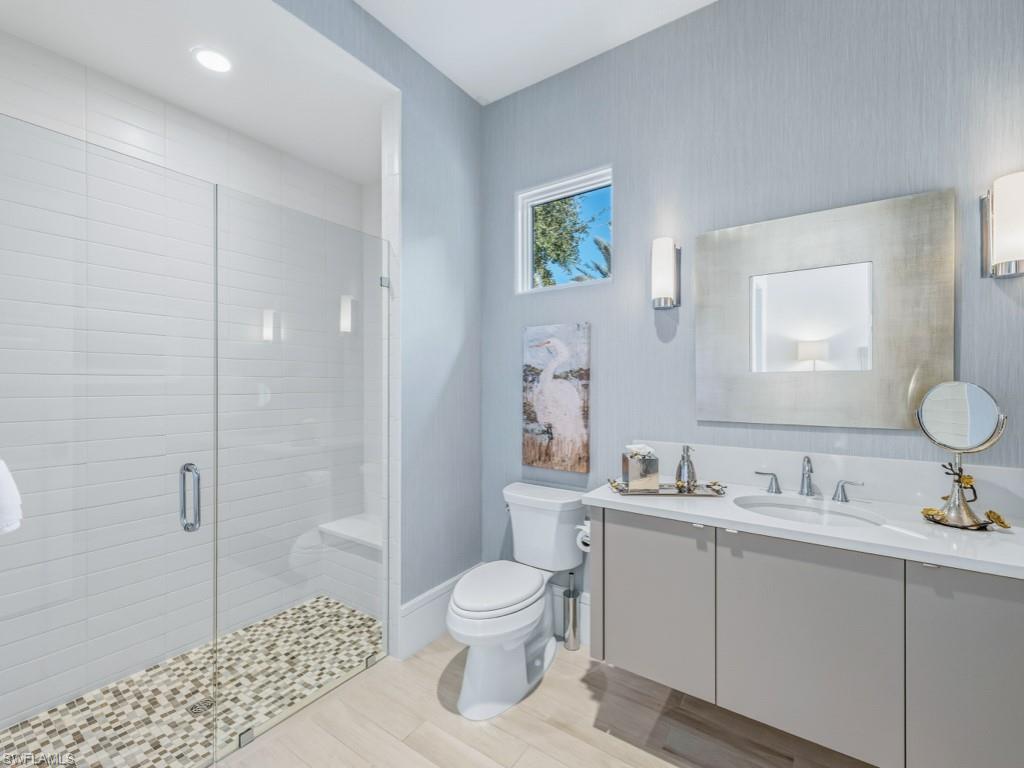 Nestled on a private homesite over 3/4 of an acre, this exceptional residence offers ultimate privacy and peace of mind, enhanced by a roof completed in 2018. Inside, state-of-the-art technology — including three touch panels, an iPad station, and 16 cameras — ensures your comfort and security. Enjoy the convenience of a private movie experience in your home theater, or convert this space into a FIFTH bedroom for extra guests. The stunning foyer is bathed in natural light through expansive glass walls, leading you into an open, airy living space. Zero-corner sliding doors offer seamless transitions between indoor and outdoor living, inviting you to the pool and outdoor entertaining area. The spacious kitchen, featuring a wet bar with an additional cooktop and wine cooler, is perfect for both casual dining and gourmet cooking. For the ultimate convenience, the three-car garage includes GarageTek flooring and an auto lift for a fourth car. With three generous guest suites, a home office with built-in desks, and a luxurious primary suite complete with a morning kitchen and ample closet space, this home is designed for those who appreciate both comfort and elegance. Imagine stepping onto the soft sands of the Gulf, with the tranquil waves lapping at your feet and the sky ablaze with a golden sunset. This is everyday life at Mediterra’s fully renovated, private Beach Club — reopening early summer! From the moment you arrive, your experience is effortless: valet parking, reserved lounge chairs, and umbrellas awaiting you, or set up on request for the ultimate beachside comfort. With 10,000 square feet of space, the Beach Club offers a variety of luxurious amenities, including indoor and alfresco dining, a full bar, a sparkling swimming pool, and changing rooms with lockers for your convenience. As the sun begins to set, indulge in a dinner while the vibrant colors of the horizon provide the perfect backdrop to your evening. Located within the exclusive, award-winning community of Mediterra, you’ll have access to a host of world-class amenities, including two Tom Fazio-designed golf courses offering unlimited afternoon play, pickleball, tennis, bocce, and so much more. Whether you’re enjoying a relaxing day at the Beach Club, playing a round of golf, or unwinding at home, nothing compares to the lifestyle Mediterra offers. Come, live the dream.