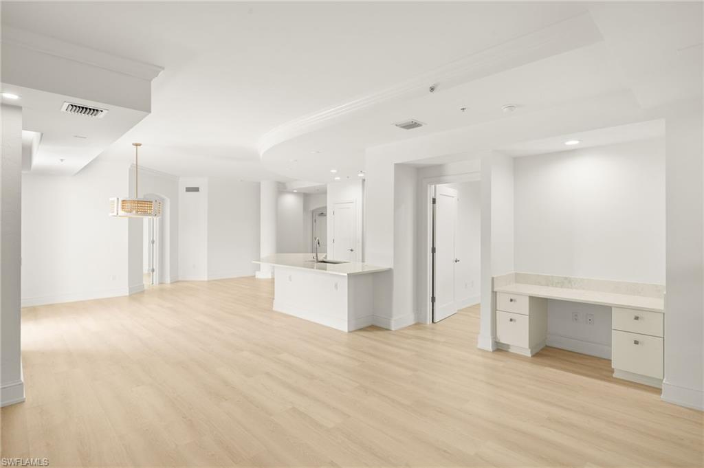 Luxury, comfort and convenience converge in one of Naples sought-after urban destinations. All the updates have been completed there is noting to do but move right in. This impeccably appointed fully furnished residence is the epitome of upscale living, boasting designer-curated interiors and sophisticated upgrades throughout. Go inside to discover beautiful new furnishings, updated flooring and custom lighting that set the tone for effortless elegance. The home features two expansive en-suite bedrooms, with custom-built cabinetry, and generous walk-in closets—an oasis of comfort and tranquility. Both en-suite baths are masterfully finished with oversized glass showers, luxurious soaking tub, and premium fixtures, offering spa-inspired relaxation right at home. The gourmet kitchen has been updated with rich cabinetry, tiled backsplash, stainless steel appliances, gorgeous quartz countertops, gas cooktop and a pantry. A breakfast bar with seating invites casual dining and conversation. The sun-drenched living and dining areas flow seamlessly onto a private balcony — ideal for entertaining or enjoying stellar sunset views over the Central Piazza of Mercato. Additional highlights include new HVAC and water heater, two assigned covered garage parking spaces and climate-controlled storage unit on your same floor. Residents enjoy exclusive access to a private rooftop retreat featuring a resort-style 52-foot sparkling swimming pool and spa, a state-of-the-art fitness center, renovated clubhouse with catering kitchen, an indoor and outdoor bar area, Viking gas grills and a firepit seating area making this the ultimate place for entertaining guests. This is a pet-friendly building that has a rooftop fenced-in dog park. All this, just close to Naples finest dining, shopping, entertainment, Whole Foods and pristine Gulf beaches. This is more than a home, it’s a lifestyle of elevated urban sophistication.