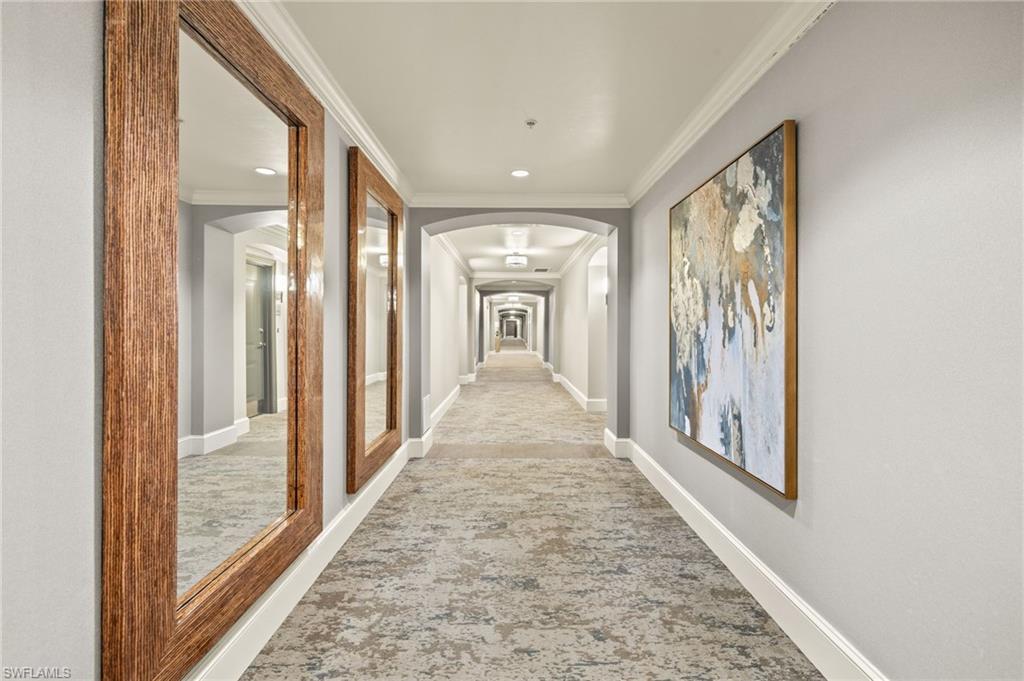 Living at its Finest: Nestled in the quietest corner of Mercato, this condo with luxury finishes is a must see! Step inside to discover a home drenched in natural light, featuring new top-of-the-line polished porcelain flooring and crystal lighting throughout. All new custom closets provide ample storage and a large pantry, enhancing the spacious layout. The chef's dream kitchen is equipped with granite countertops, a stylish stone accent backsplash, top-of-the-line appliances, and a well-equipped gas stove. Just off the living area, your private balcony invites you to savor breathtaking Naples sunsets and the stunning atmosphere of Mercato. For your convenience, this unit includes 2 assigned garage parking spaces and a bonus storage room located on the same floor. This exclusive gated community provides top-notch amenities, including 24/7 security, resort-style 52-foot rooftop swimming pool, hot tub, outdoor grilling area, fitness center, fire pit, and a clubhouse with a catering kitchen. Enjoy a vibrant neighborhood with an array of dining, shopping, and entertainment options just steps away. A short walk brings you to the beach, a variety of restaurants, boutique shopping, Whole Foods, a movie theater, bars, nightclubs, yoga and cycling studios, day spas, and hair and nail salons.