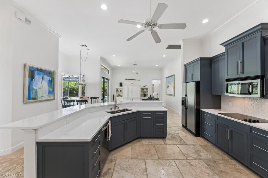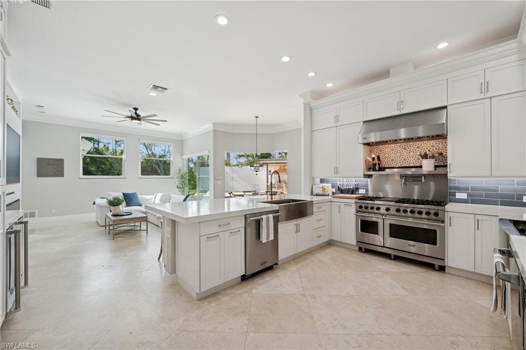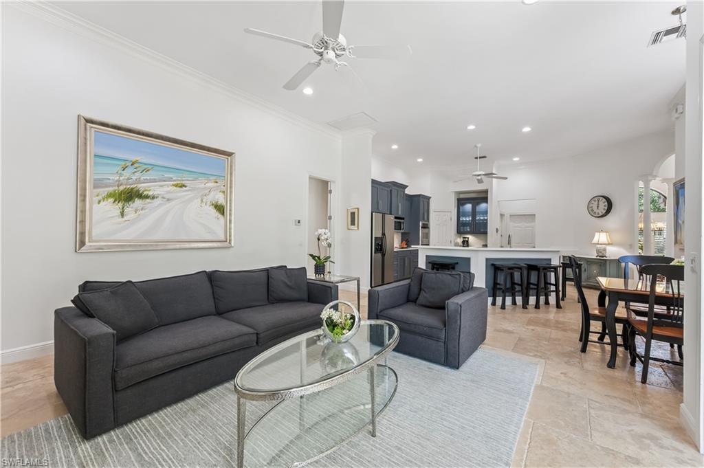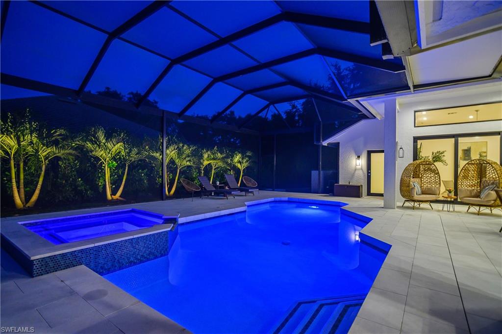 Effortlessly sophisticated home on a cul-de-sac street in the highly sought after and rarely available Monterey community! This 4 bed/3 bath + den home was recently updated to include an additional 500 sf of living space and an open kitchen perfect for entertaining. So much is NEW in this home, both inside and out! Full of luxurious finishes, including a professional La Marzocco espresso bar, Simonelli grinder (worth $12k), NEW Italian ceramic tile, New double convection oven, NEW AC with UV light filter, NEW water heater, NEW water well and NEW RO system. Outside features a butterfly garden, $55k of NEW landscaping, NEW lanai casing, NEW parking pad, and a spacious backyard with a zip line and trampoline. All furniture conveys, including a piano and Nest cameras. Located in an A+ rated school zone, just 1 mile from the beach, near the upscale Mercato and Waterside Shops. The gated Monterey community offers a renovated clubhouse, resort-style pool, fitness center, tennis, pickleball, and more. With easy access to I-75, the SWFL International airport, world class dining, shopping, entertainment, and beautiful white-sand SW Florida beaches.