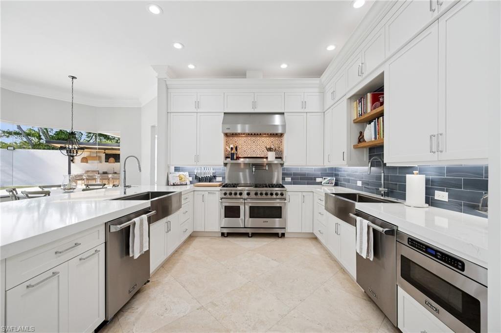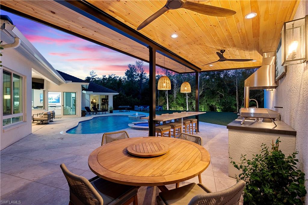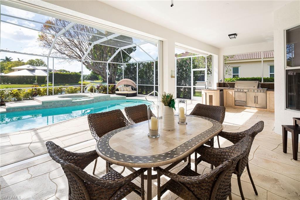 Nothing like this property in Monterey! Whether seeking indoor or outdoor living space, this home offers it all! This fully renovated 5 bdrm home provides an extraordinary over-sized outdoor entertaining space AND is move-in ready with gorgeous finishes throughout the interior. Enjoy day-to-day living in the remodeled kitchen which includes 48" gas Viking range with double oven, 36" Viking refrigerator & 36" Viking freezer, two dishwashers, wine fridge, & Elkay water bottle filler. Open to the family room with fire feature or retreat to the luxurious primary suite with fully remodeled lavishly appointed bathroom. The expanded backyard with full outdoor kitchen and newly refinished pool is an entertainer's delight and/or at-home play space. Impact windows & doors, newer roof, new epoxy garage floor, and more...located on a cul de sac in coveted, gated N. Naples neighborhood of Monterey with 3 har tru tennis courts, pickleball/sports court, playground, pool, fitness and more. Easy proximity to A+ schools, private schools, shopping, beach & downtown makes this an absolute gem of a house to call home.