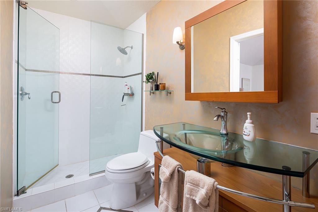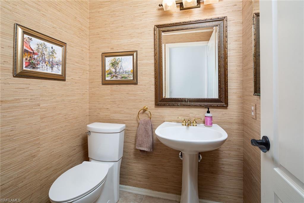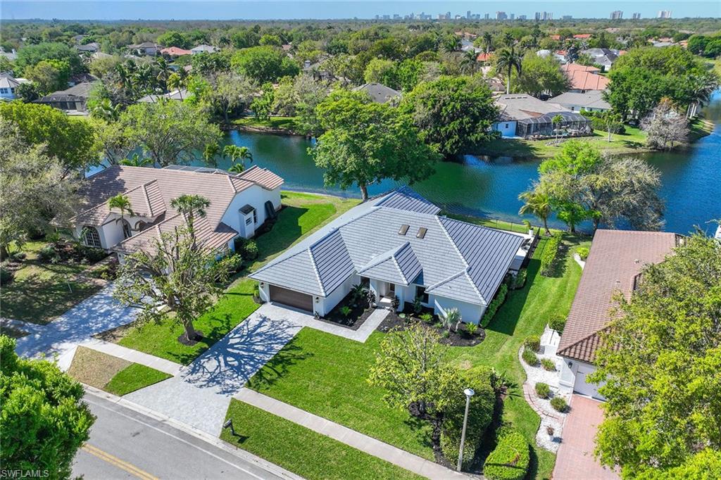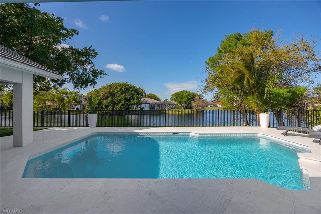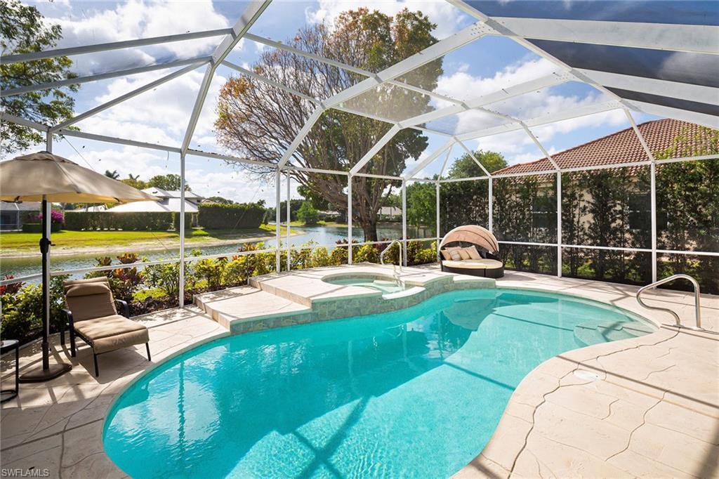 Welcome to this elegant three-bedroom, two-bath residence with breathtaking long lake views in the coveted gated community of Monterey. On a peaceful cul-de-sac, this home is designed for relaxing and entertaining with a seamless blend of indoor and outdoor living. This tastefully renovated home offers marble herringbone primary bath flooring with expansive walk-in shower, custom cabinetry, soaking tub, dual sinks and new lighting. The kitchen is stunning with beautifully curated tiles, quartz counters, island, Bosch appliances, wine station with a carbonated water faucet and built in cooler for your beverage collection. The home features vaulted ceilings, neutral large tiles on the diagonal, large walk-in closets in primary suite, split bedroom floor plan ensuring privacy with primary on one side and guest rooms on the other. The kitchen flows effortlessly to the family room with French doors that open to the spacious screened lanai with a private pool and spa, all overlooking the picturesque, serene lake. Monterey is an amenity-rich community with three Har Tru tennis courts, pickleball/sports court, playground, pool, fitness and more. Centrally in North Naples, with excellent A-plus rated schools, high-end shopping, dining, gorgeous beaches all just minutes away. Don’t miss this opportunity to live the ideal Naples lifestyle!