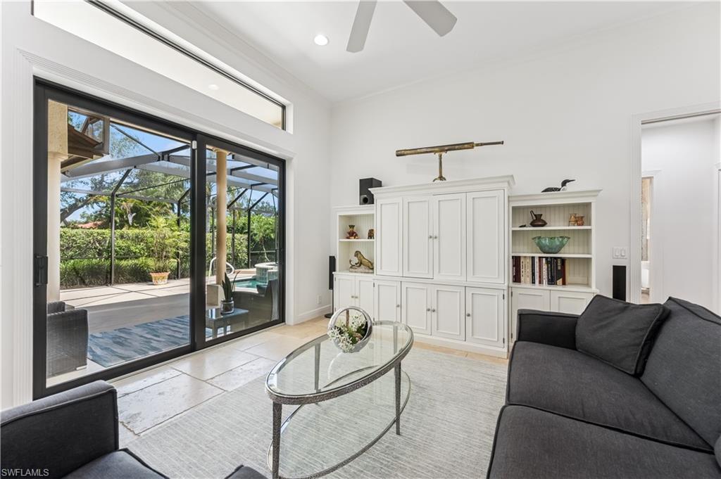 Luxurious, private, and serene, this beautifully renovated home is an oasis nestled in a desirable, quiet location within the heart of the coveted neighborhood of Monterey. Thoughtfully updated & meticulously maintained both inside and out, this home enjoys an abundance of light with soaring 11.5 foot ceilings, top-of-the-line finishes and premium appliances. At the heart of the home, a custom 11 foot island anchors the well-equipped chef's kitchen with sleek floor-to-ceiling custom cabinetry with NEW JennAir RISE appliances, including 48” refrigerator, gas range and double wall oven with convection/microwave. The renovated bathrooms have been gorgeously updated with Taj Mahal quartzite countertops and custom cabinetry. A dedicated office with floor-to-ceiling custom built-in cabinetry offers a stylish and functional work/flex space. Step outside to your own private sanctuary, complete with NEW stunning picture-window screen cage with unique & functional shade/rain protection roof systems, NEW outdoor kitchen, & NEWLY refinished pool/spa, all framed by lush hedges and tropical palms with dramatic landscape lighting. Countless upgrades provide efficiency as well as peace of mind, including NEW impact windows & doors, NEW A/C, NEW instant hot water heater, NEW pool equipment, NEW paver driveway, newer roof and more! With 24-hour gate guard, 3 har tru tennis courts, community pool/clubhouse, sport/pickleball court, neighborhood events & just minutes to beaches, downtown, shopping, & schools - Make this your next move!