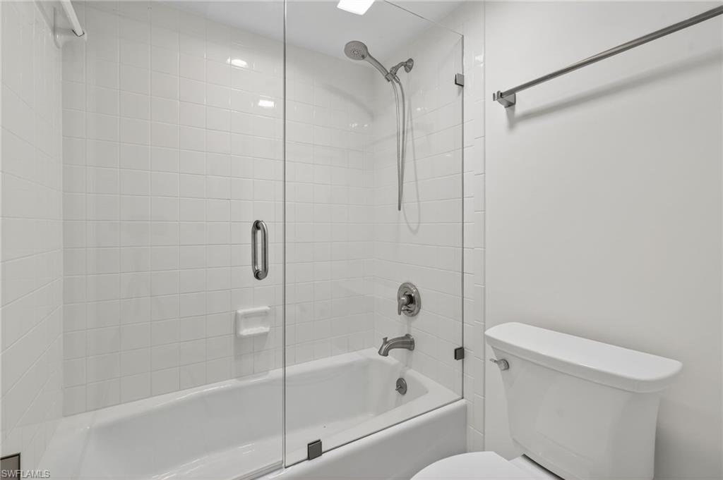 **MOTIVATED SELLERS!** Welcome to this fully remodeled, move-in ready first-floor end unit in the highly sought-after, pet friendly (large dogs allowed) community of Naples Bath and Tennis. All assessments have been paid, providing peace of mind for the new owner. This beautiful condo has been updated from top to bottom, featuring luxury vinyl plank flooring throughout for a modern, low-maintenance living experience. The bright and airy kitchen boasts newer stainless steel appliances, sleek white quartz countertops, white cabinetry, and a timeless subway tile backsplash. Recessed lighting adds a touch of elegance, enhancing the open and inviting space. The unit also includes impact-resistant glass for added security and storm protection. Storage is abundant throughout, with spacious closets and an external storage unit just outside the door. The large pantry cabinet ensures that all your kitchen essentials stay neatly organized. The enclosed lanai adds additional living space under air, offering a perfect spot to relax while enjoying stunning views of the serene lake and lush landscaping. The master suite is a true retreat, featuring a gorgeous glass-enclosed shower, white vanity with quartz countertops, and a generously sized walk-in closet. The guest bedroom is equally spacious, providing comfort and privacy for visitors. Naples Bath and Tennis is known for its prime location, just minutes from Naples' world-class shopping, dining, and entertainment options. The Gulf of Mexico's pristine white sand beaches are only a short drive away. This is a rare opportunity to own a beautifully renovated condo in one of the most desirable communities in Naples.