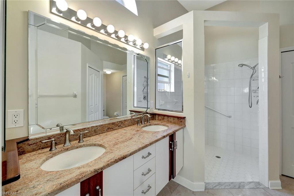 Location, location, location! Only a mile from the Gulf of Mexico beaches. Introducing a one-of-a-kind, rarely available and sought-after coastal villa in sunny Naples. The most notable features include a private swimming pool and spa with an overflowing water feature, a new roof, electric hurricane shutters, an attached two-car garage, southern exposure for maximum afternoon sun and a beautiful lake view with a fountain. Built in 1999 and renovated by the owner in the past years, this residence encompasses nearly 1,500 square feet of living space, three bedrooms, two baths, soaring ceilings with a sky-light in the kitchen, a built-in entertainment center in the living room, a large and re-designed primary bath, along with a custom-built California closet, oversized baseboards, large tile floors diagonally, a paved driveway, travertine tile floors and custom-built cabinets with a stainless steel beverage cooler in the pool area. These are only some of the notable improvements, all the rest are waiting to be seen just for you to fall in love with. A retreat for sunseekers and beachgoers that stands out among all others, surrounded by lavish tropical landscaping. This property is among the best of everything in Naples including beaches, shopping, dining, entertainment and places of worship. Northshore Lake Villas is a small, pet-friendly, gated community and the best-kept coastal secret with low HOA fees, a community pool and sun deck. Welcome to your new home in Naples.