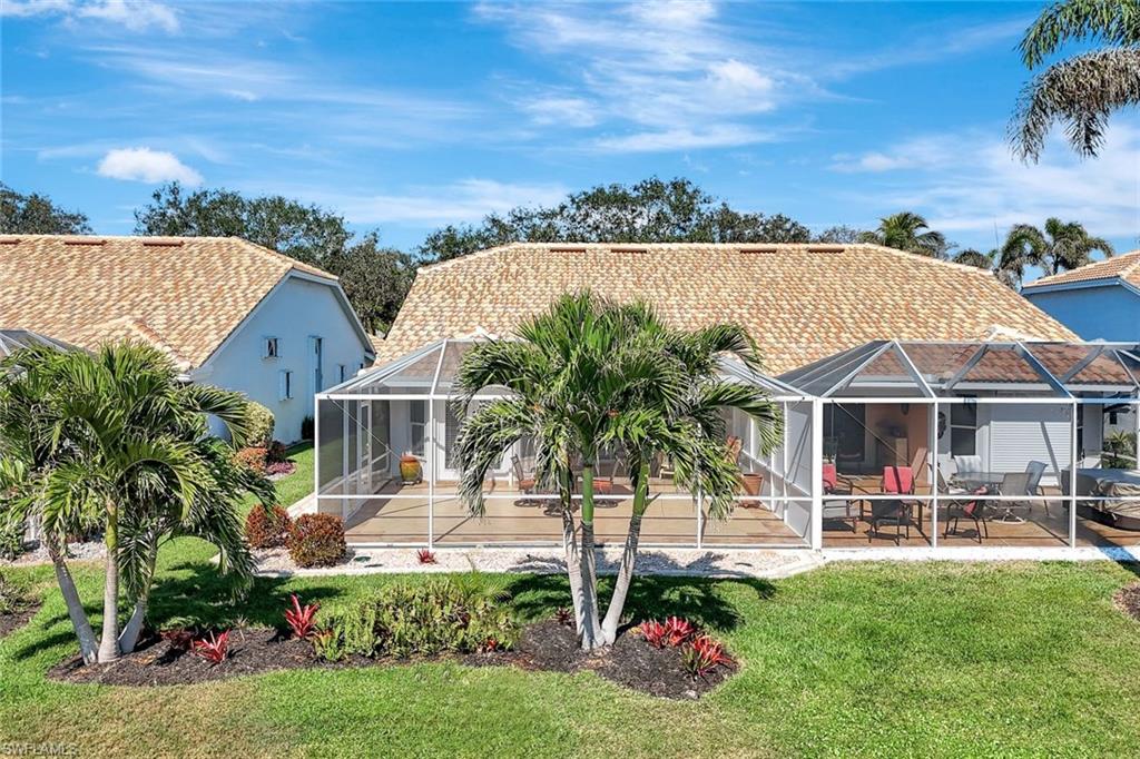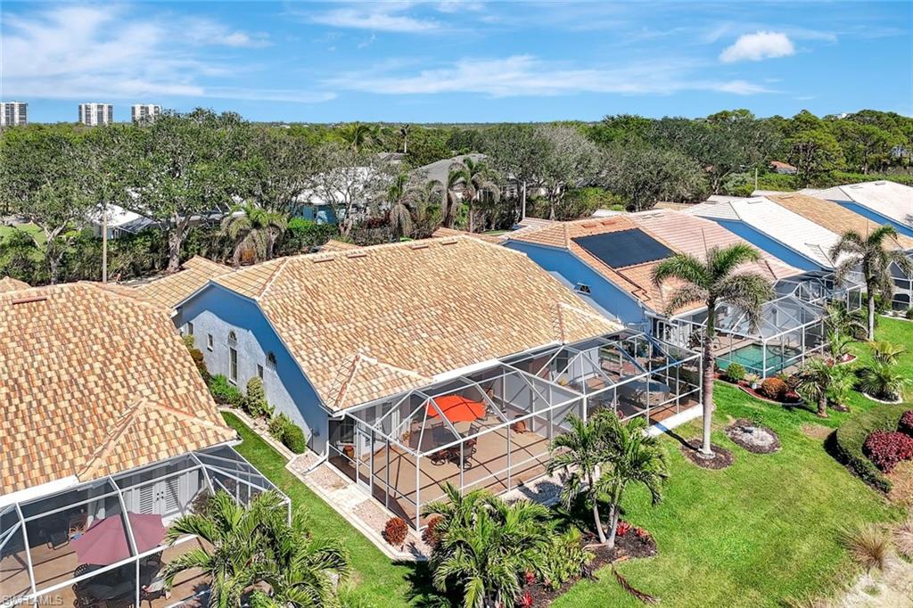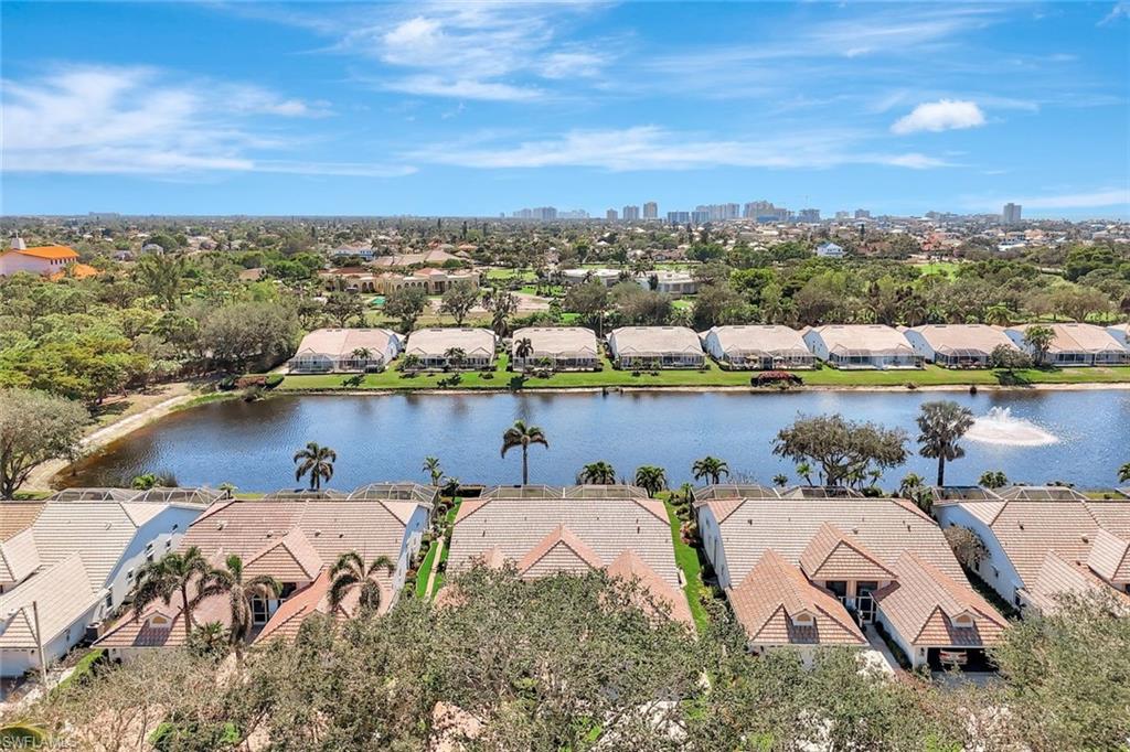 WOW - WELCOME TO SPECTACULAR!! This Villa is light, unbelievably bright, with southern exposure, beautifully appointed and ready for the new buyer. Sold turnkey furnished, this home possesses an extended exterior lanai with views of the lake beyond. It has two bedrooms and a den, is totally furnished, with a new roof in 2018 and has the ambiance and location most people are looking for. Situated in North Naples this stunning attached villa has some upgrades that are pleasing, with room to expand to bring it to your personal taste. There has never been an issue with flooding and it is in the preferred x500 flood zone. The location is rivaled by none as it is situated across from The Dunes and walkable to the beach. With Mercato and other great attractions nearby, there is not much more you could want in your Naples oasis. Inviting and captivating - this one won't last long!!!