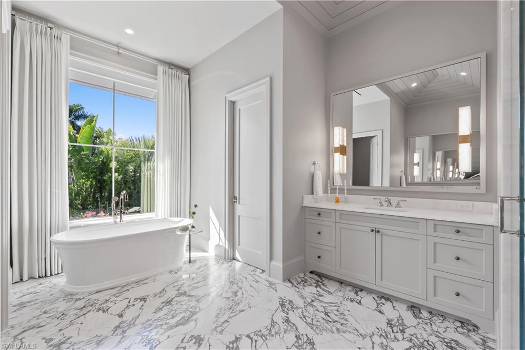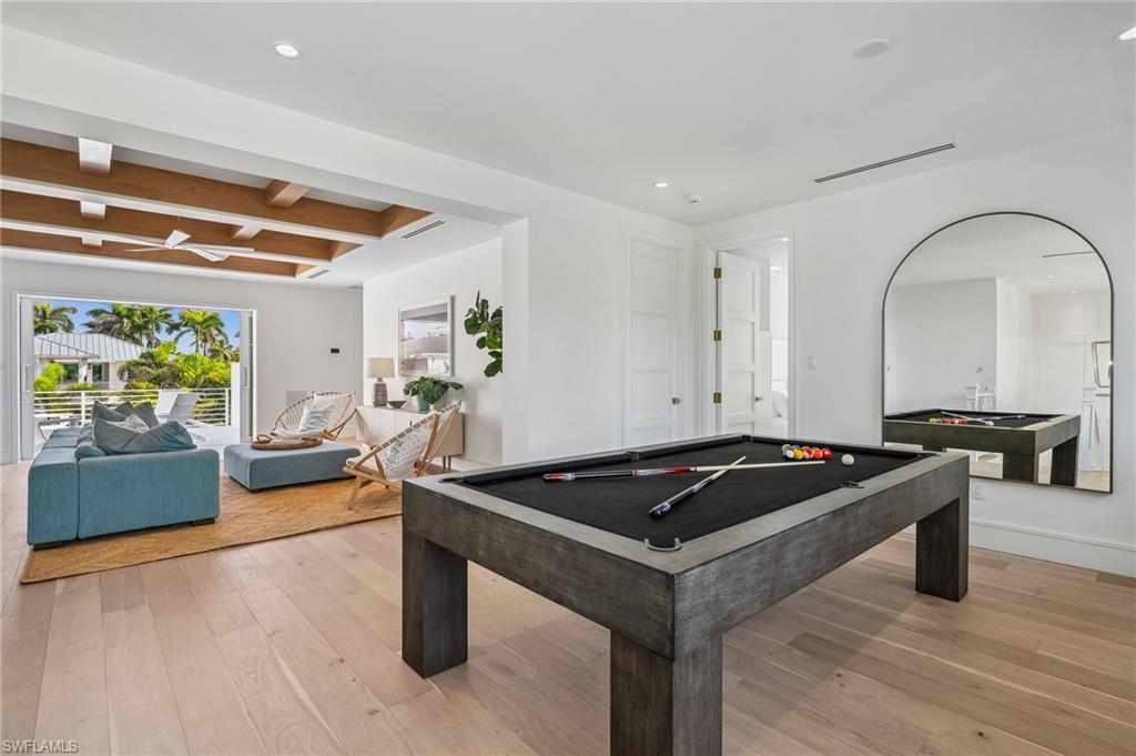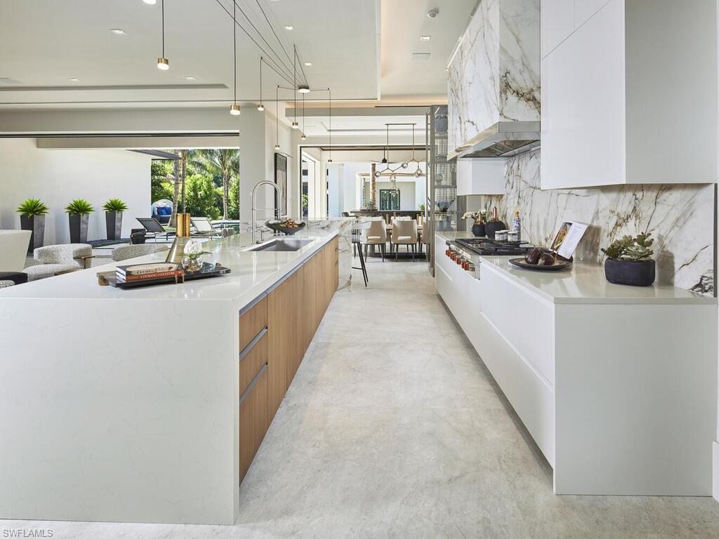 Step into refined coastal living with this exceptional new construction home located just two blocks from the beach in the heart of Olde Naples. Designed by Stofft Cooney Architects, built by Equinox Construction Group, and styled by Freestyle Interior Design, this residence blends timeless elegance with modern functionality. The spacious great room floor plan invites seamless indoor-outdoor living, ideal for both relaxed family life and sophisticated entertaining. A chef’s kitchen equipped with premium appliances and a separate prep kitchen offers versatility for everyday meals or catered gatherings. The home features five bedrooms, five full baths, and three half baths, including two luxurious master suites, one on each level, providing privacy and flexibility for family and guests. Additional spaces include a club room, two laundry rooms, and thoughtfully designed living areas throughout. A three-car garage with alley access preserves the classic charm of the front facade while adding convenience. With white oak wood flooring, high-end finishes, a whole-house generator, and an unbeatable location in one of Naples’ most coveted neighborhoods, this property presents a rare opportunity to enjoy brand-new luxury living just moments from the Gulf of Mexico.
