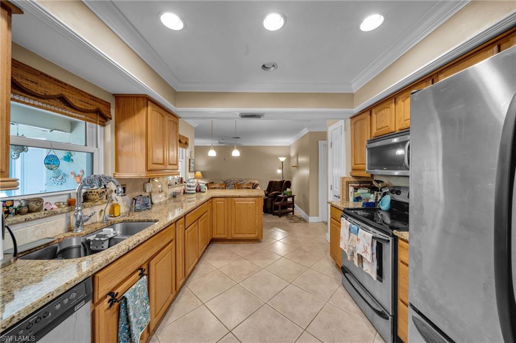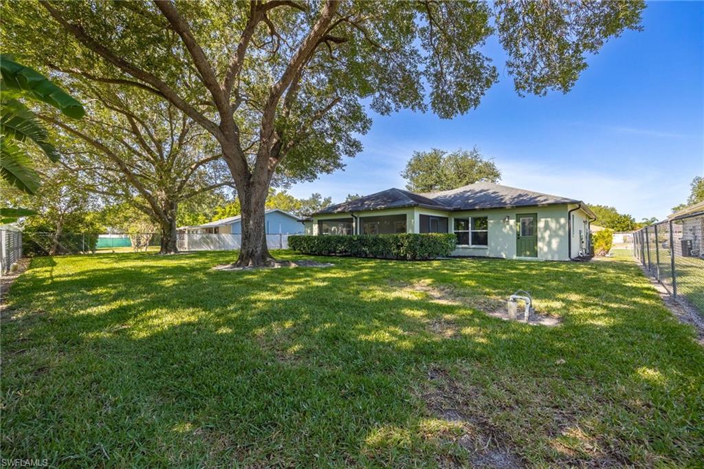 This one is a GEM! Situated on a spacious corner lot in a quiet cul-de-sac, this 3-bedroom, 2-bathroom home with a bonus room/den and 2-car garage has all the features you’ve been hoping for. Step inside to a warm, well-cared-for interior and enjoy peace of mind with a NEW ROOF (2023). The backyard is a dream—with beautiful mature trees and plenty of room to relax, play, or entertain. Located in a friendly, established neighborhood with an incredibly low HOA of just $59/month, you’ll enjoy access to community tennis courts, pool, playground, park, clubhouse, and a fishing pier. Top-rated schools are just across the street, and a brand-new Publix and exciting new shops and restaurants are coming nearby in 2025. Best of all—no flood insurance required! All of this in Naples—consistently ranked the #1 place to live in the U.S. Don’t miss out on this wonderful home!