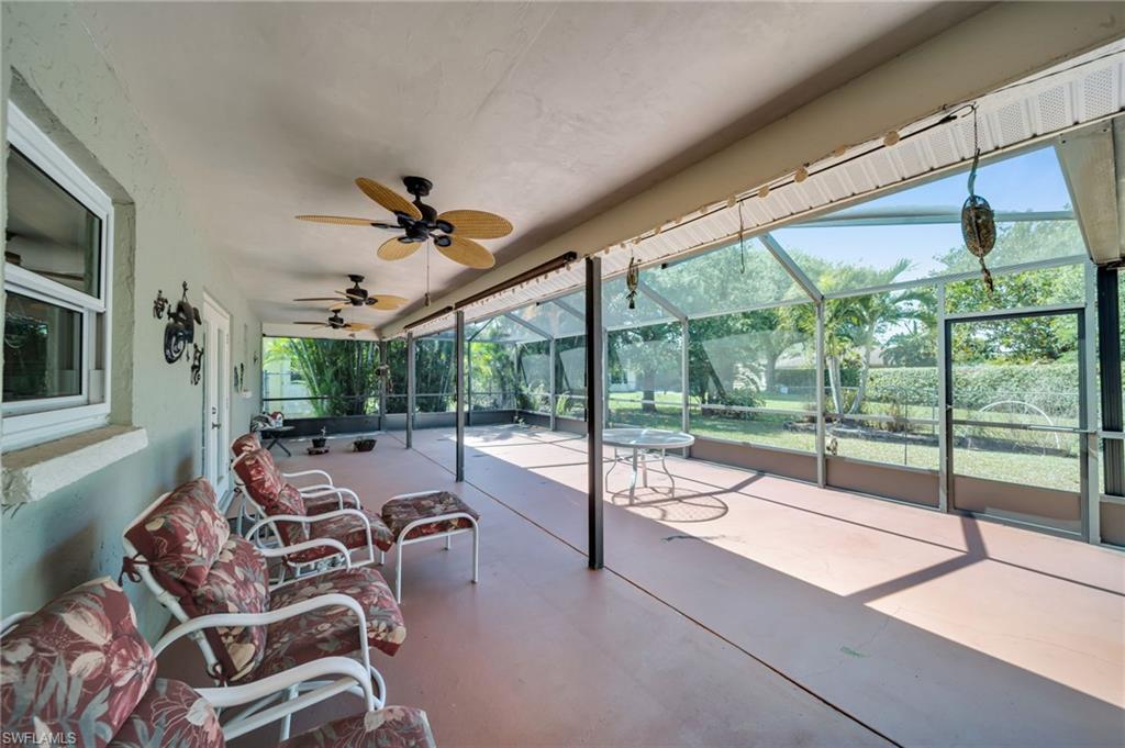 Welcome to this private and beautifully maintained 3-bedroom, 2-bath home, located in one of Naples, FL’s top-rated school districts. Nestled on a 0.20-acre lot at the end of a quiet cul-de-sac, this property offers an incredible combination of space, privacy, and community features—all surrounded by nature. Step inside to a well-designed floor plan with 1,635 sq ft under air and 2,070 sq ft total area, ideal for comfortable living and effortless entertaining. The home features a 2024 A/C system, a 2-car garage, and a spacious driveway that can easily accommodate multiple vehicles—perfect for gatherings with family and friends. The lanai area is enclosed with windows, allowing it to function as either an open or closed space—a truly versatile bonus. Enjoy peaceful outdoor living with a lush backyard garden and a mature shade tree that keeps the space cool and inviting—like your own private oasis. As part of a vibrant community, you'll enjoy access to resort-style amenities including a pool, fishing pier, and tennis courts—all for just $704 per year in HOA fees. Plus, the home is outside the flood zone, so no flood insurance is required—what a deal! This home is the perfect blend of nature-inspired living, convenience, comfort, and value!