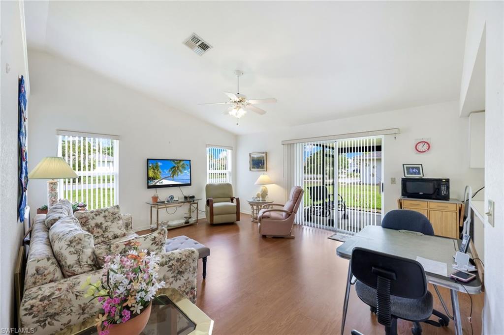 Don’t miss out on this great location, in a well-established neighborhood and a desirable community with low HOA fees. This home features 3 bedrooms, 2 bathrooms, and 2 car garage, with separate living and family rooms. Tile throughout main living areas and carpet in the bedrooms. French doors lead out from the formal dining room to the extended screened lanai. The backyard is fenced and has a paved pathway leading to the front of the home, there is enough room for a pool. Interior features include plantation shutters, surround sound, crown molding, wood cabinetry, granite countertops, and more. The home has impact glass windows. The roof was replaced in 2019, the water heater was replaced in 2018, A/C unit was replaced in 2017 and the R/O system for the entire home. The Community offers a Community Park, Community Pool, Fishing Pier, Play Area, and Tennis Court. Not in a flood zone.