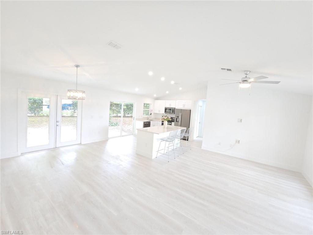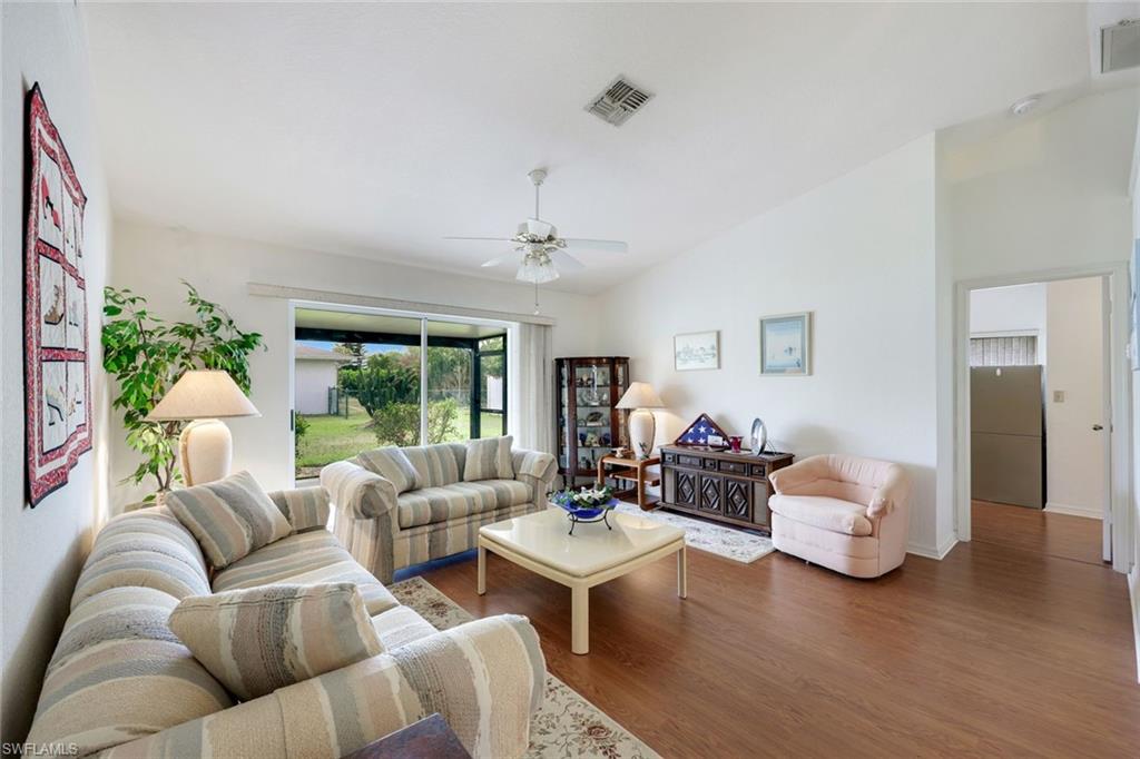 NAPLES: Citrus Greens. JUST REDUCED FOR QUICK SALE TO $440,000 (APPRAISED FOR $460,000). Orange Tree is a tranquil residential community in Golden Gate Estates. This Single Family home sits on an oversized corner lot of 0.29 acres. The light, bright and airy home with open concept, offers vaulted ceilings, 3 bedrooms, 2 baths, living, family, and dining rooms with 1,822 sq ft under air and a 2-car garage. Impact windows. New Air Conditioner Installed April 2025. Roof installed in 2019. Garage door installed 2012. Extended screened enclosure 2019. Laminate flooring throughout. Private courtyard front entrance. Very low HOA fees of $177 a Quarter. Pet friendly community with plenty of sidewalks. This community offers a clubhouse with private membership, biking and jogging path, tennis, community pool and community room. For the avid angler, a fishing pier sits off the lake, with great access to all the lakes.