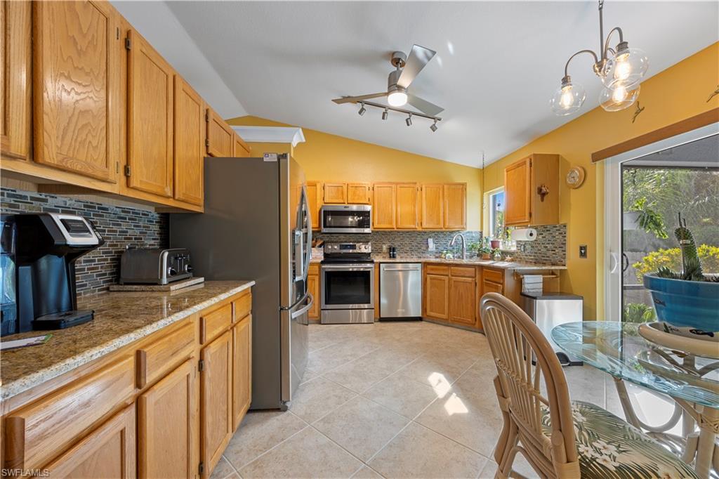 Welcome to this immaculate oversize corner lot property located in the prime location of Orange Tree, excellent location in the growing area of Immokalee Road, new markets, gas stations and restaurants, top rate school district. Due to upcoming construction and street expansion projects, this area is projected to experience rapid growth in prices, take advantage of this opportunity to acquire an excellent property, very well maintained and with great potential, don't miss it! Orangetree is offering a clubhouse, community pool, tennis courts, playground area and a fishing pier on the big lake. Association fee is one of the lowest only $59 per month and is out of a flood zone. Kitchen has shaker cabinets, granite countertop and new appliances. The pool is a saltwater with a heater, the patio and beautiful landscaping is the perfect blend of nature-inspired living, comfort, and value! Fence 2023, AC 2022, roof 2023 lifetime warranty, new water heater. Bring your buyers, seller concessions