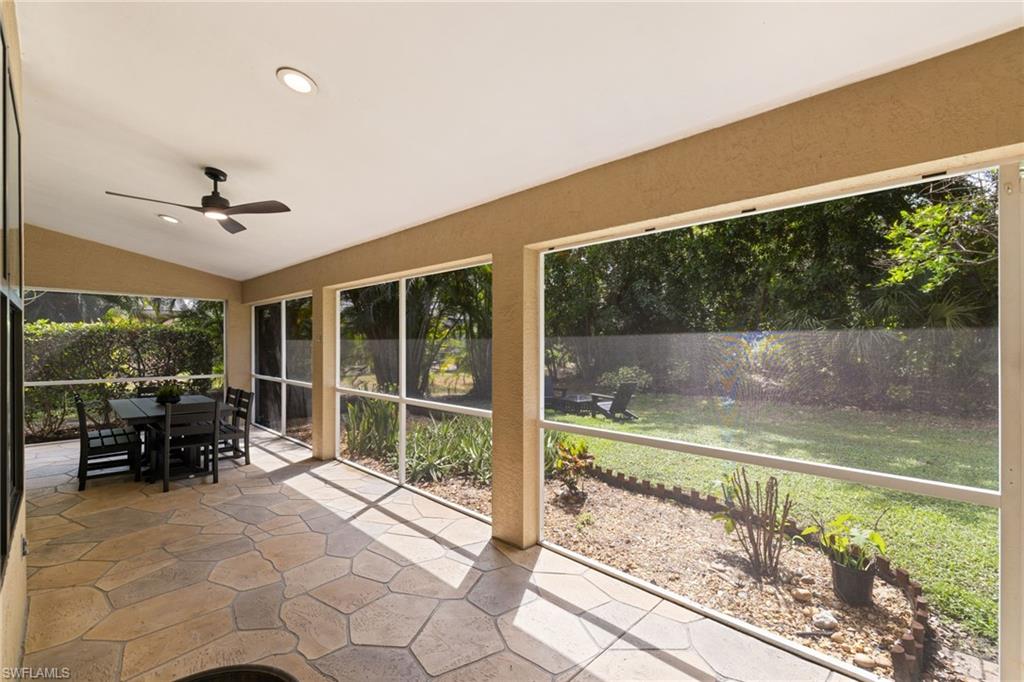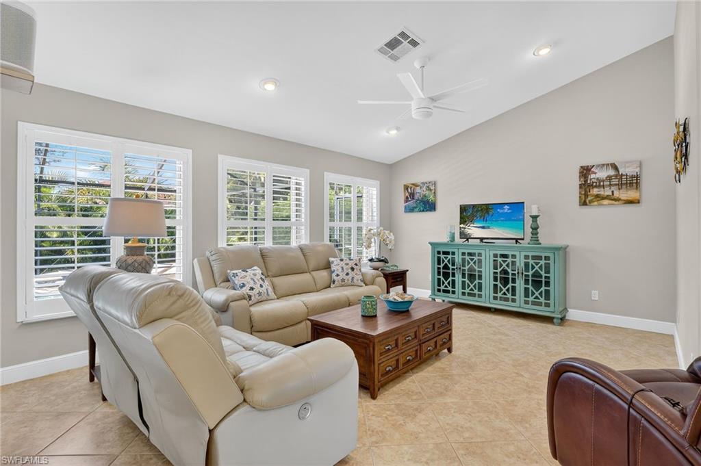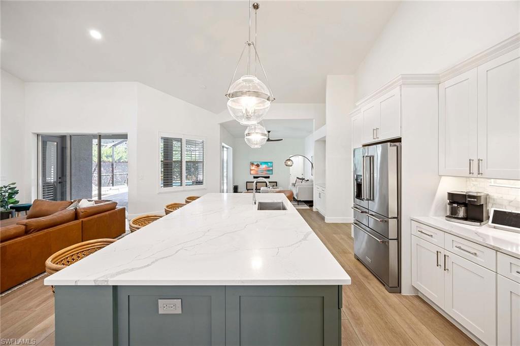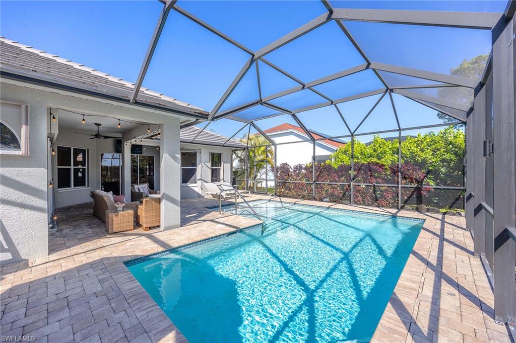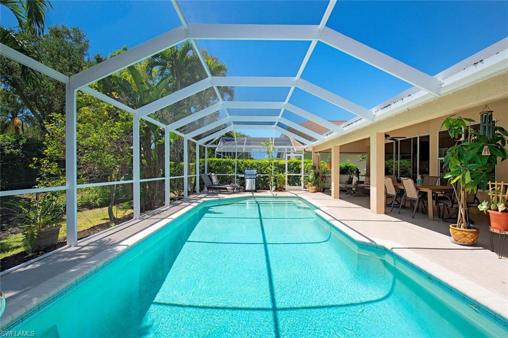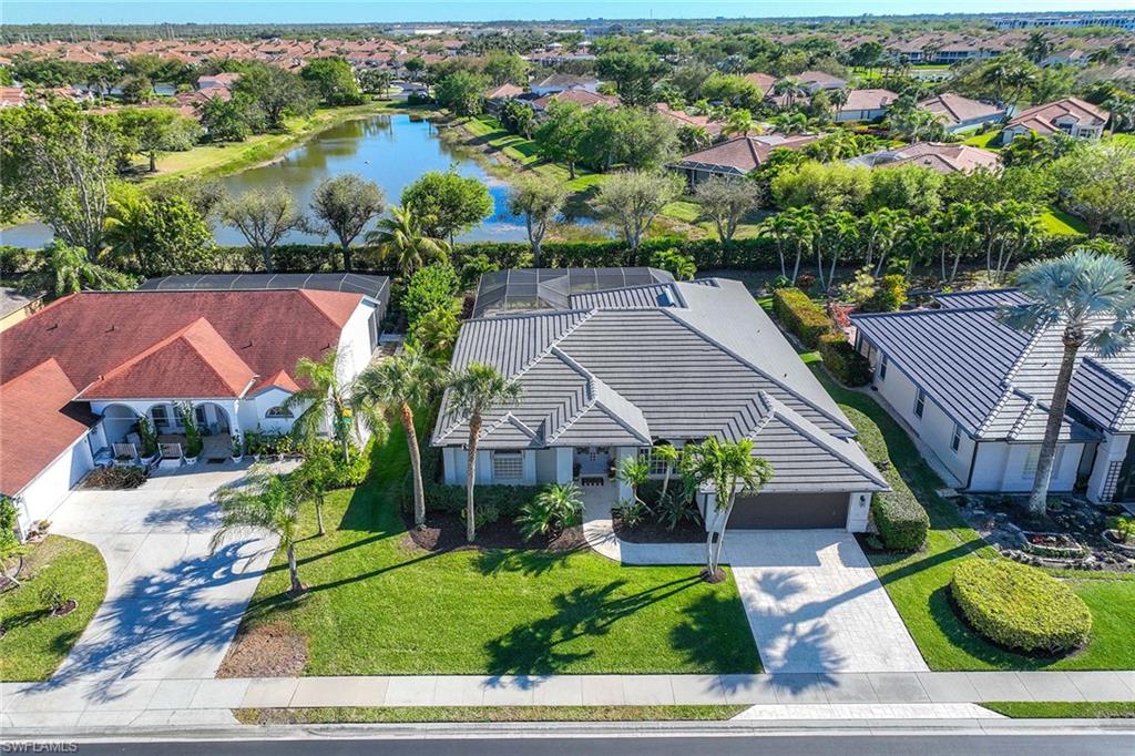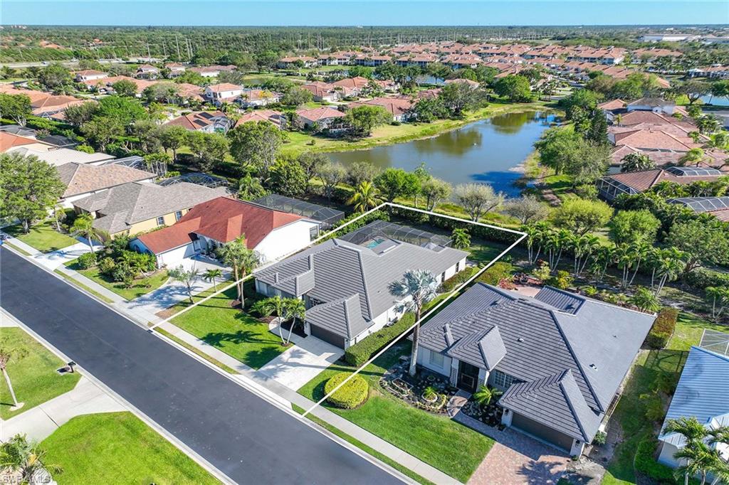 A rare opportunity to own a beautifully upgraded 4+ den / 3-bath lakefront home in the highly sought-after 34109 ZIP code. This spacious 2,626 sq. ft. residence underwent a complete remodeling in 2019, adding 450 sq.feet of living area, including a reconfigured new metal roof, an additional custom-built room and extensive interior and exterior enhancements. 3rd bathroom added in place of the laundry room, washer and dryer moved to the garage. What used to be a dining room is now an office, but can also be used as additional room or home gym or yoga studio. Enjoy unobstructed lake views through premium custom impact windows installed throughout the home, paired with impact-rated front and garage doors for full hurricane protection. A new AC system with completely redesigned ductwork ensures clean, efficient airflow year-round. Luxurious wood-look tile flooring creates a seamless, tranquil aesthetic across the entire home. The 2019 renovation also included a $400k+ custom addition by a renowned contractor, expanding the living space, and transforming the 800 sq. ft. lanai with a fully renovated pool, picture screen pool cage and cypress wood ceiling—an ideal setting for relaxing or entertaining. The main living area features soaring cathedral ceilings and elegant crown molding throughout. The spacious kitchen and all three bathrooms have been fully updated, complemented by designer lighting, wood plantation shutters, custom closets, and numerous additional custom upgrades. Ideally situated within the Orchards community and just 3 miles from Vanderbilt Beach and Mercato, minutes from top-rated North Naples public and private schools, this home offers the perfect combination of luxury living, convenience, and the highly desirable North Naples lifestyle. The Orchards neighborhood features 2 community pools with hot tubs, a clubhouse, tennis, pickle-ball and basketball courts, kids playground and an established community where you would be welcomed. Don’t miss your chance to own this lakefront paradise!
